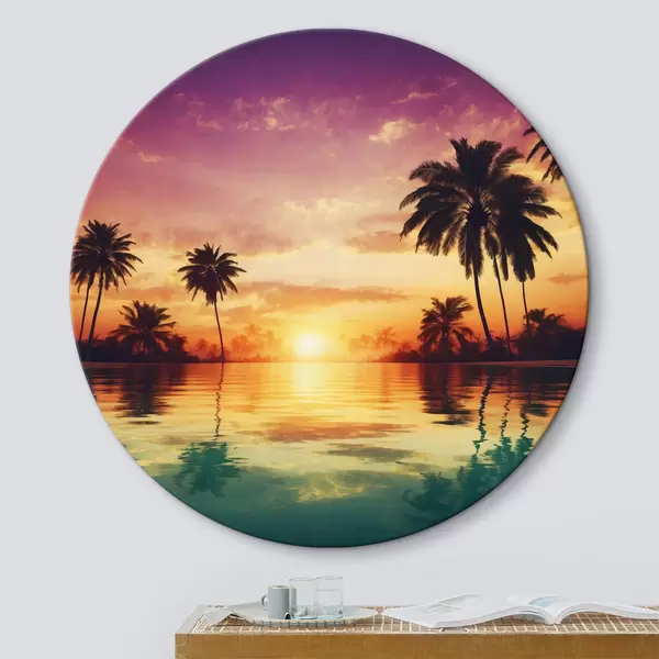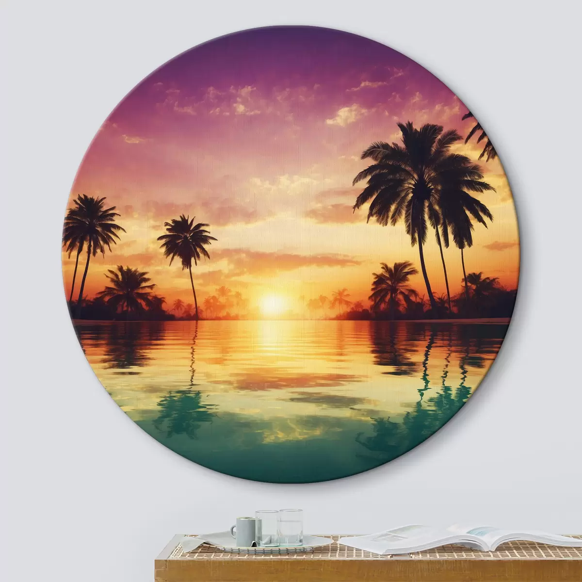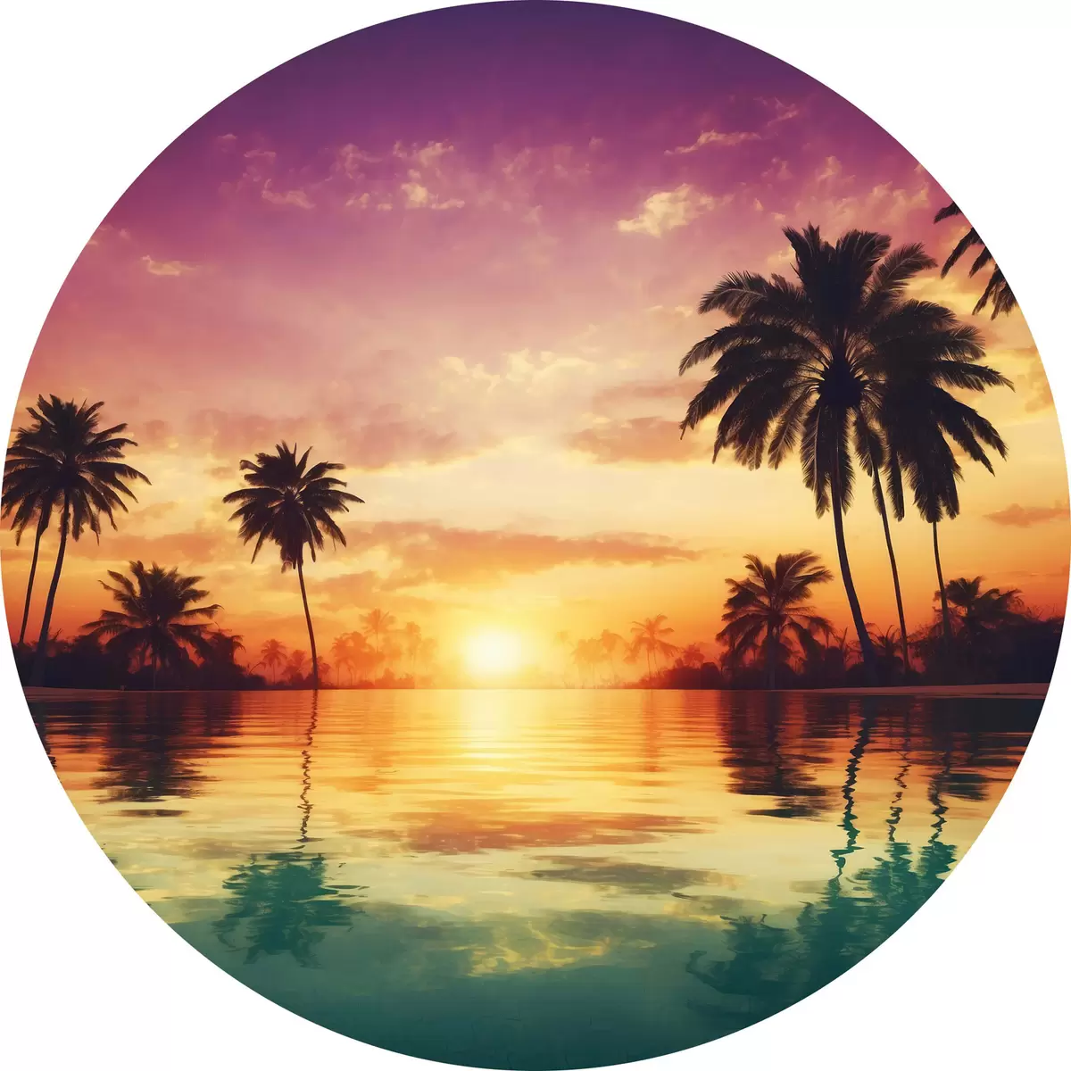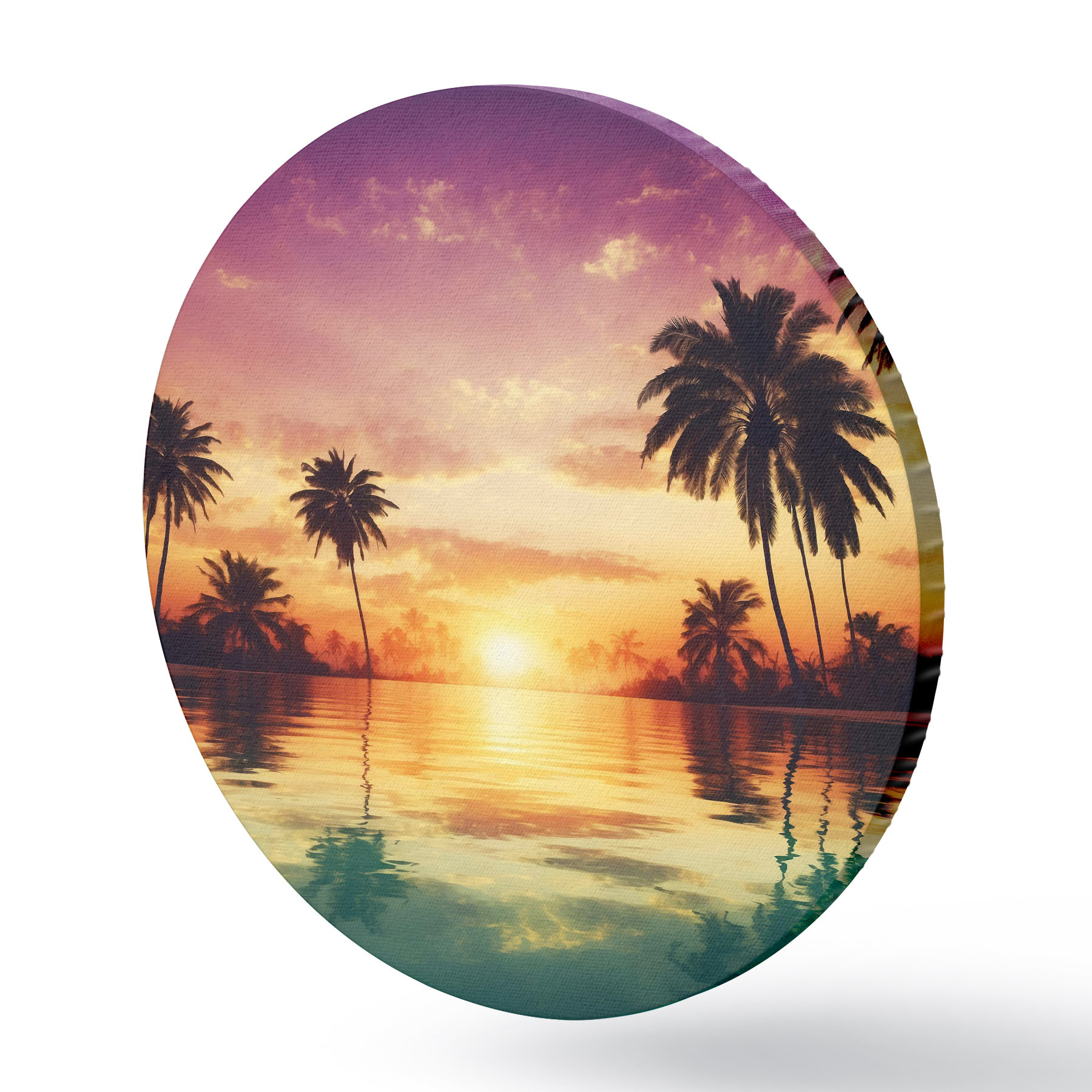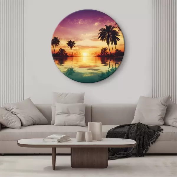 Quadri rotondi Tramonto su un bacino idrico con palme r38183