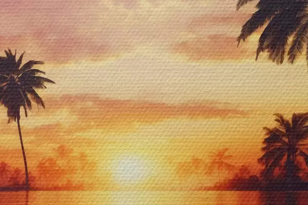 Immagine Tramonto su un bacino idrico con palme Nr r38183