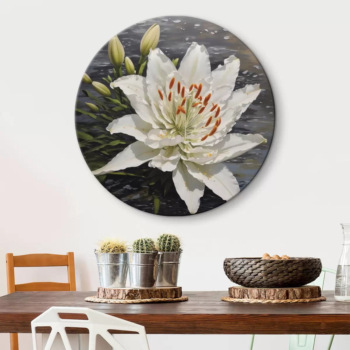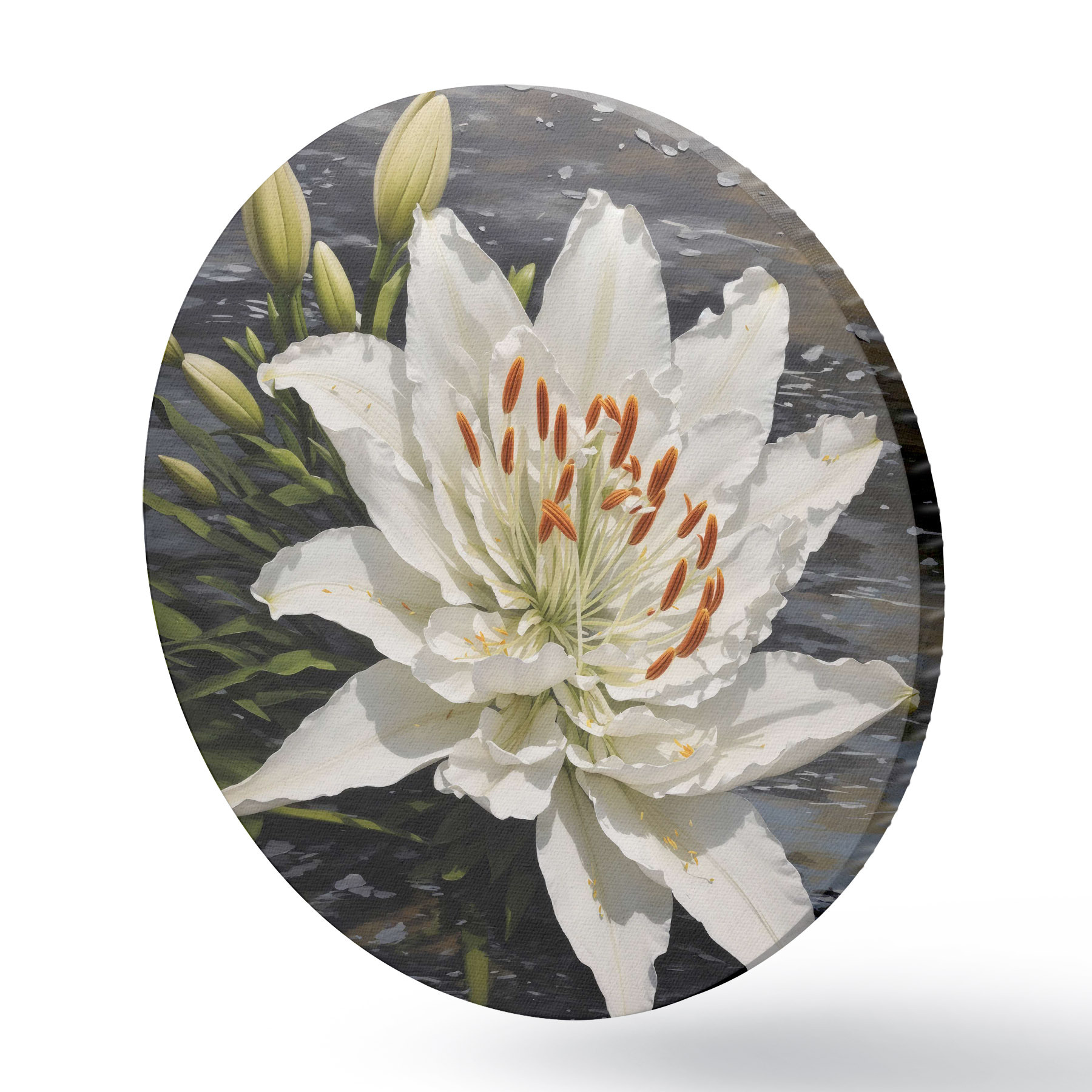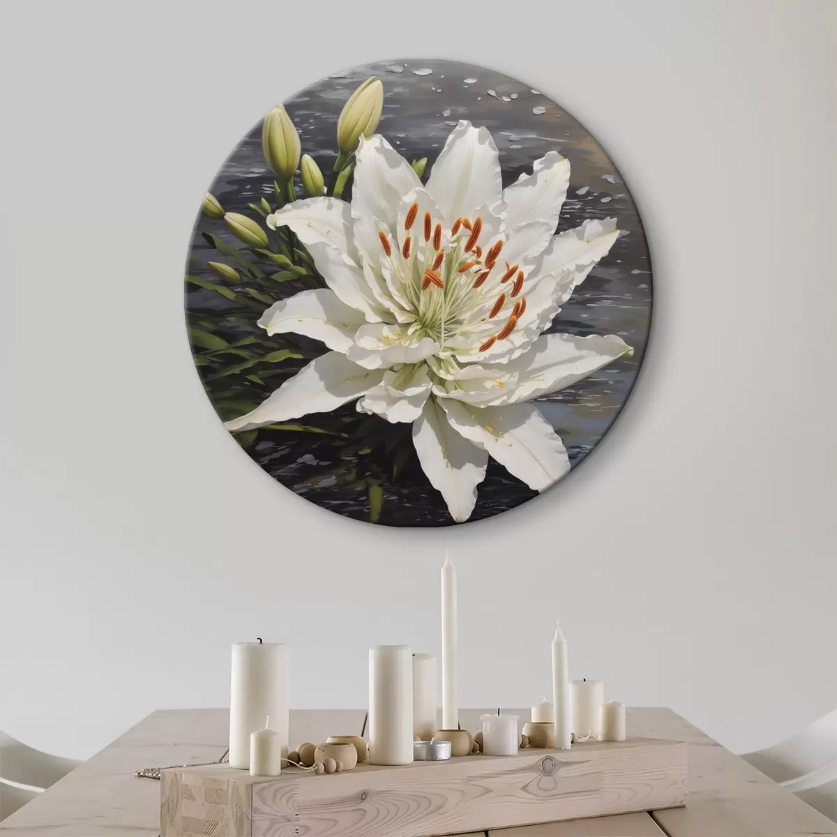 Quadri rotondi Fiore bianco con stami e boccioli arancioni r38192