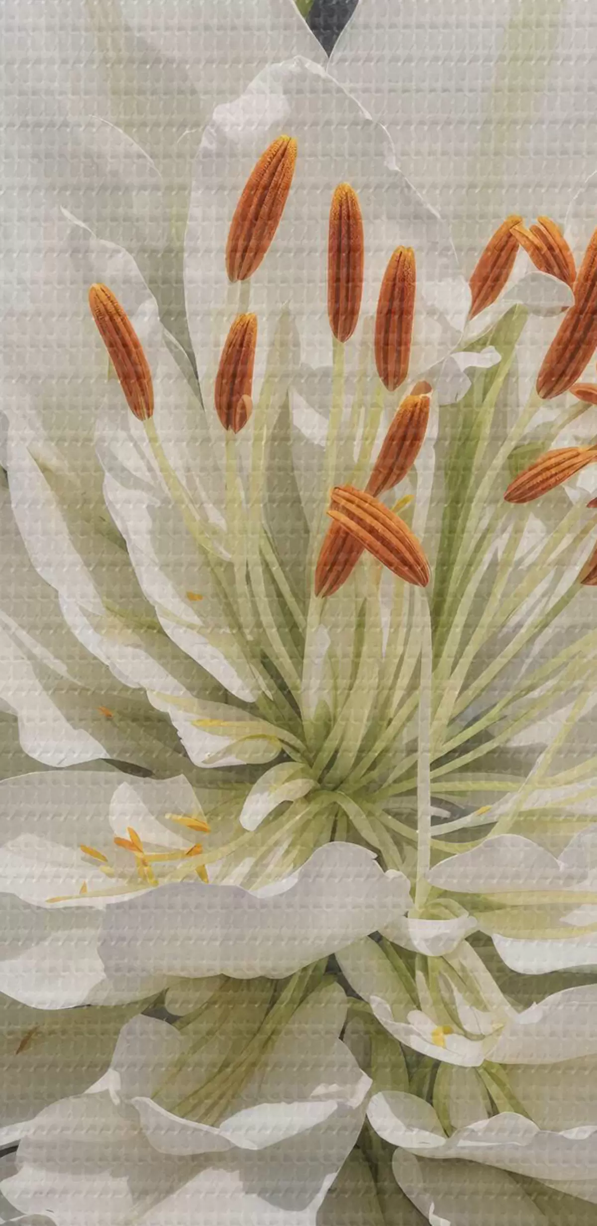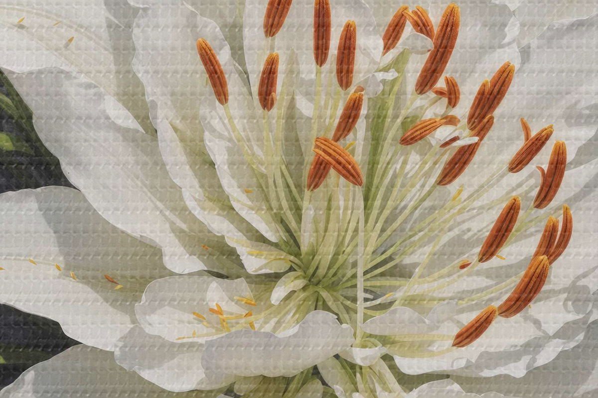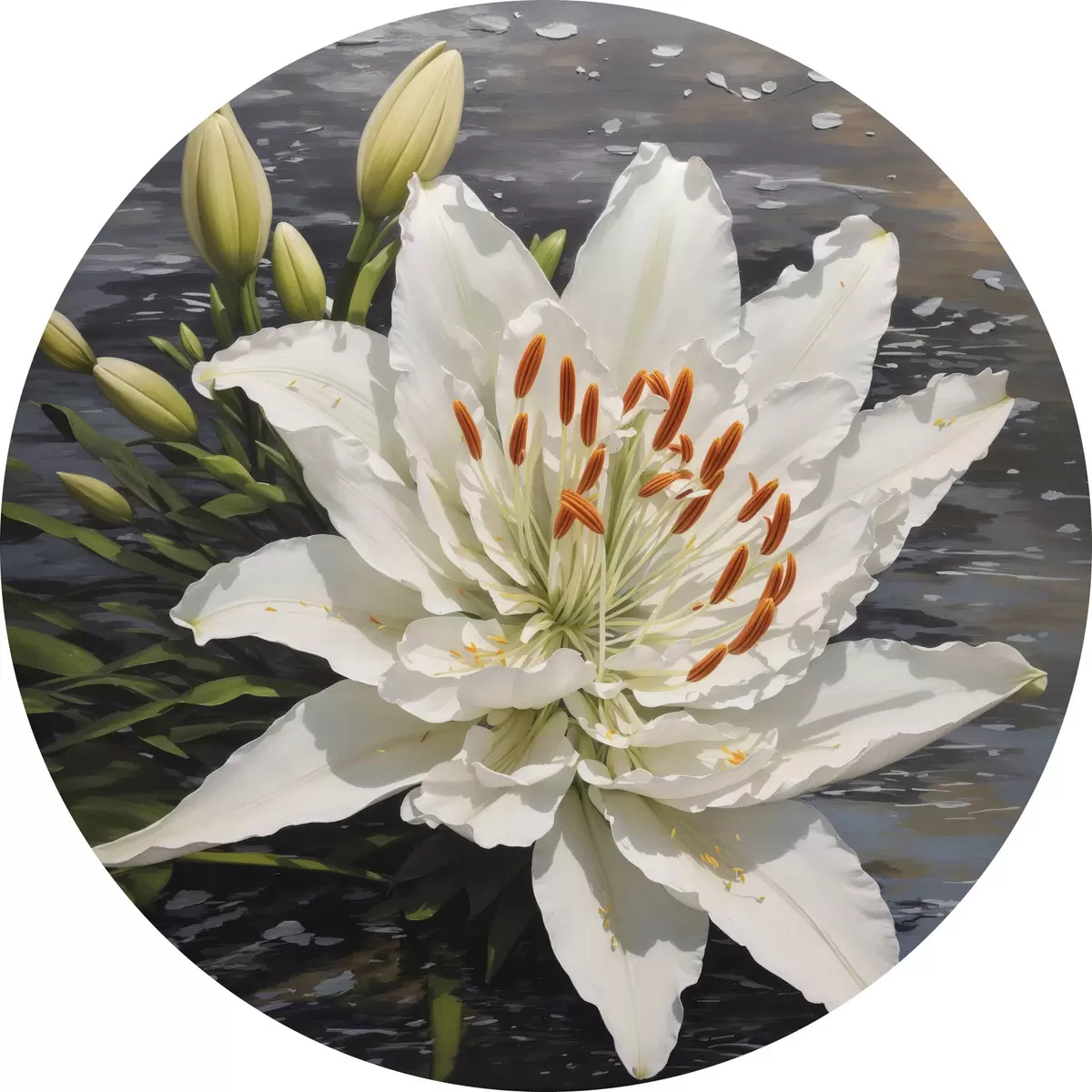 Quadri rotondi Fiore bianco con stami e boccioli arancioni r38192