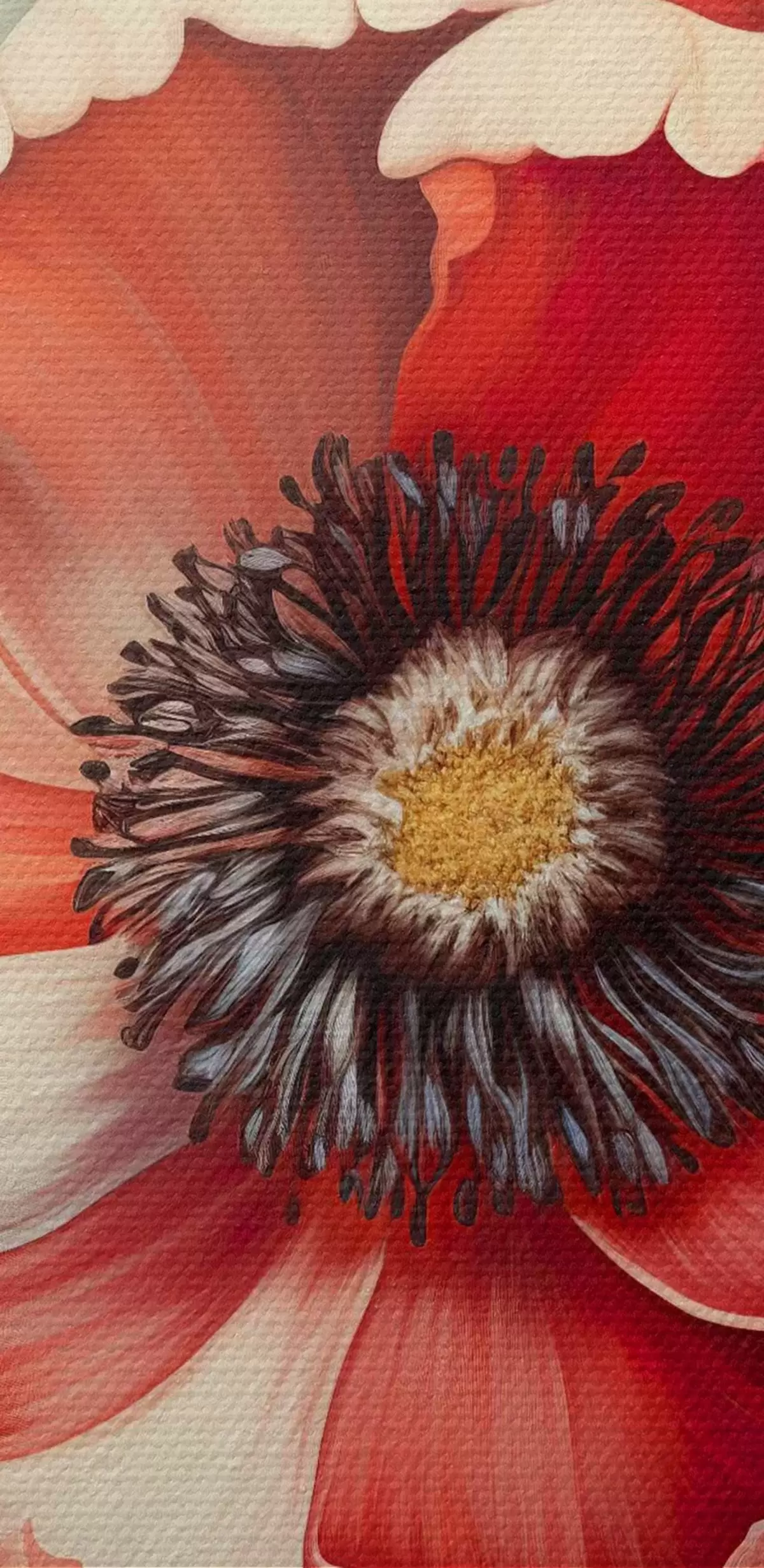 La fine trama dei fili di questa tela ricorda la superficie delle tele degli artisti professionisti.
