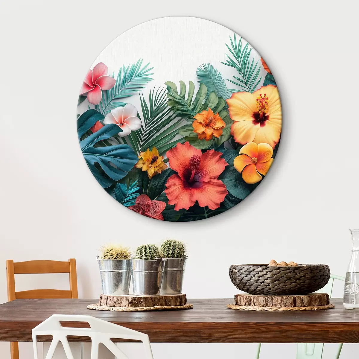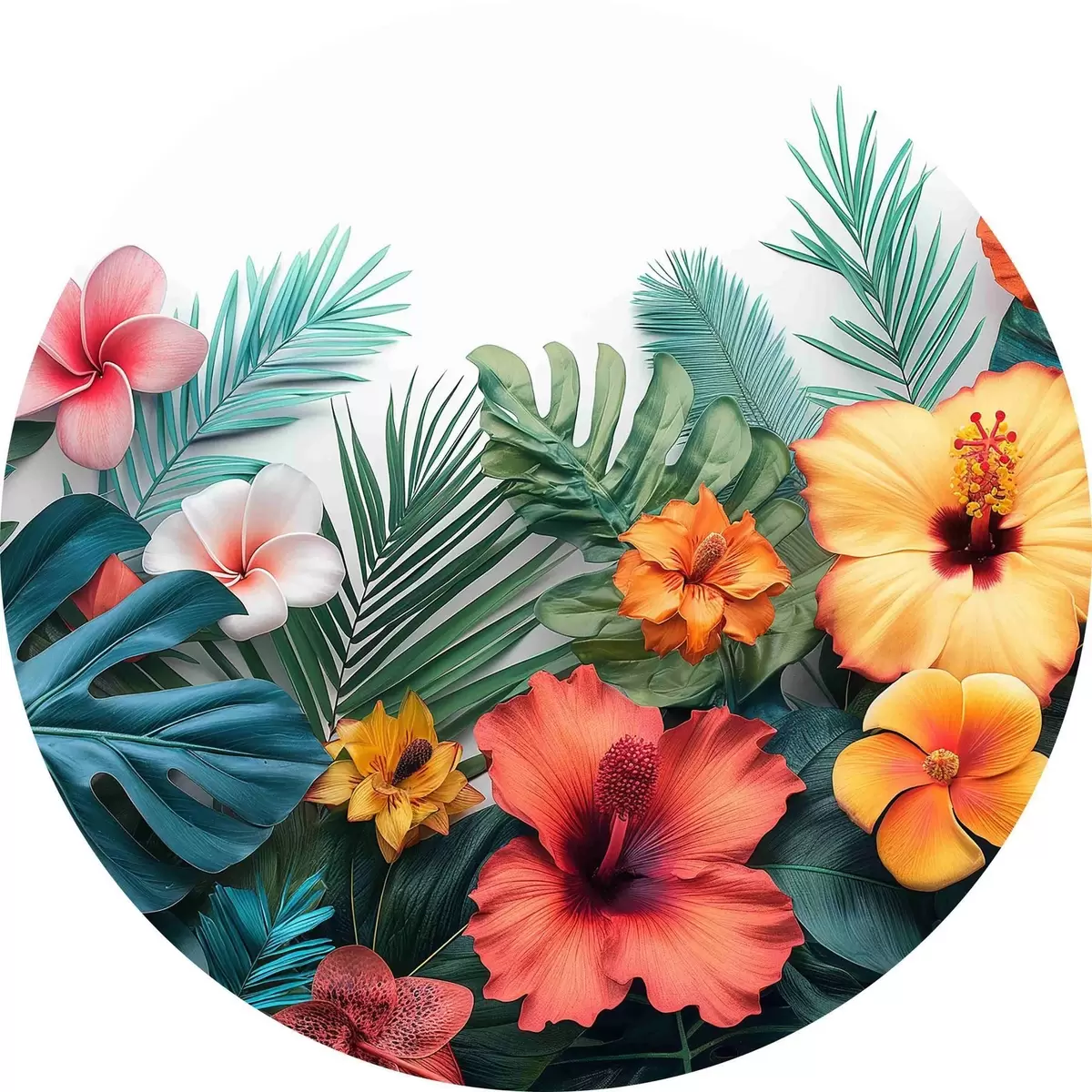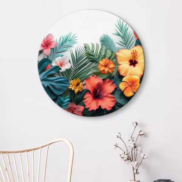 Quadri rotondi Gruppo di fiori e foglie colorate r38242