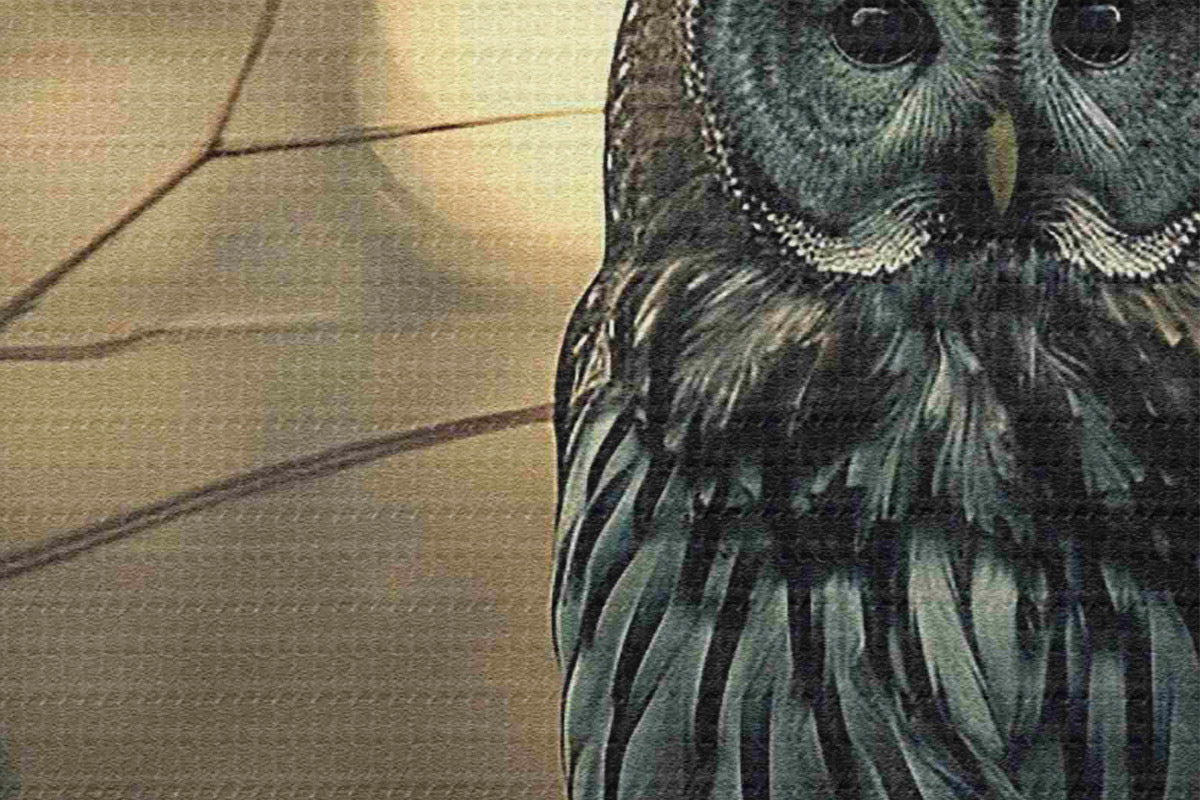 Quadri rotondi Un gufo seduto su un ramo r38248