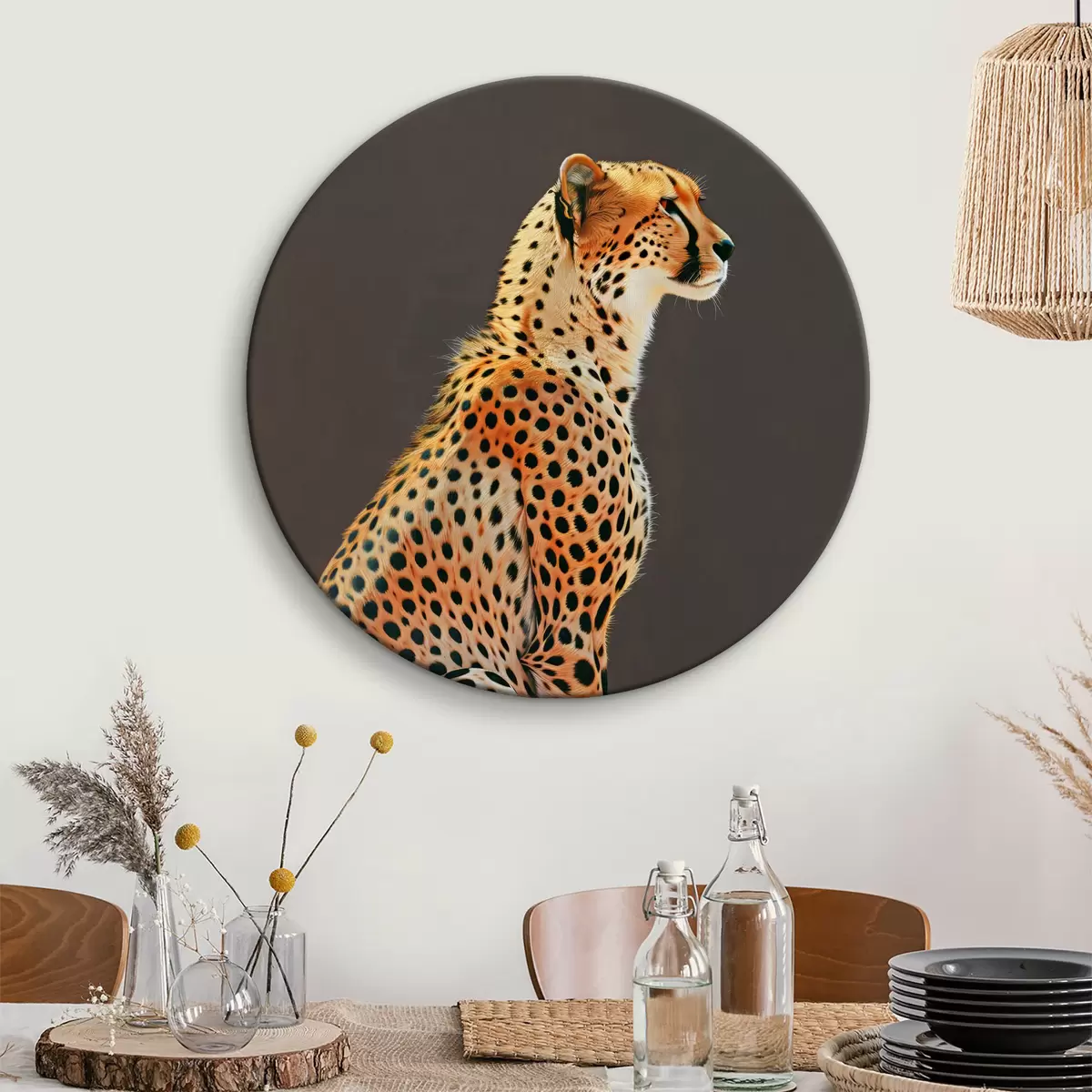 Quadri rotondi Ghepardo seduto che guarda in lontananza r38256