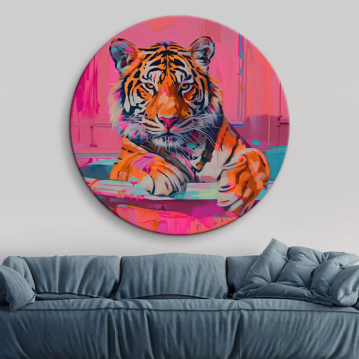 Quadri rotondi La tigre nella vasca da bagno r38257