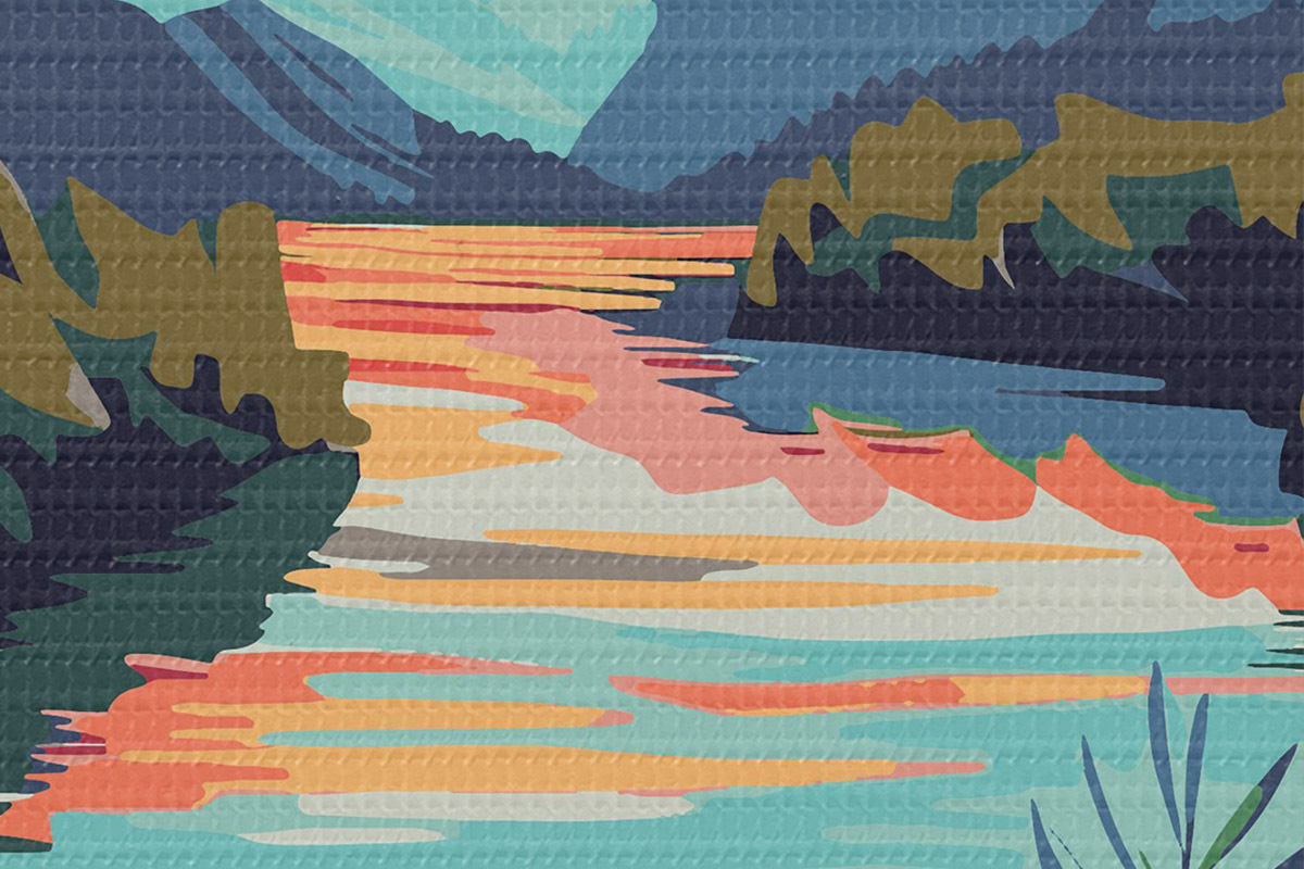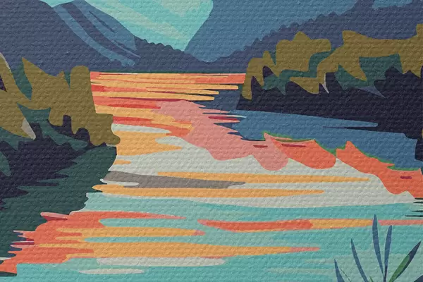 Immagine Fiume con fiori e montagne sullo sfondo Nr r38266