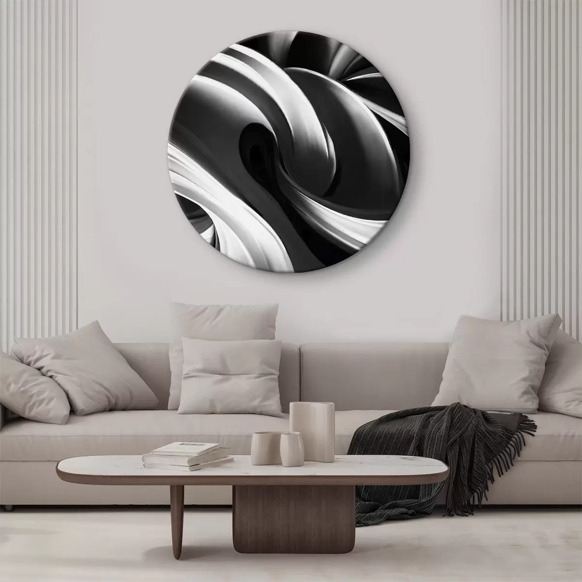 Quadri rotondi Sfondo vorticoso in bianco e nero r38270