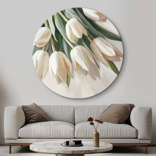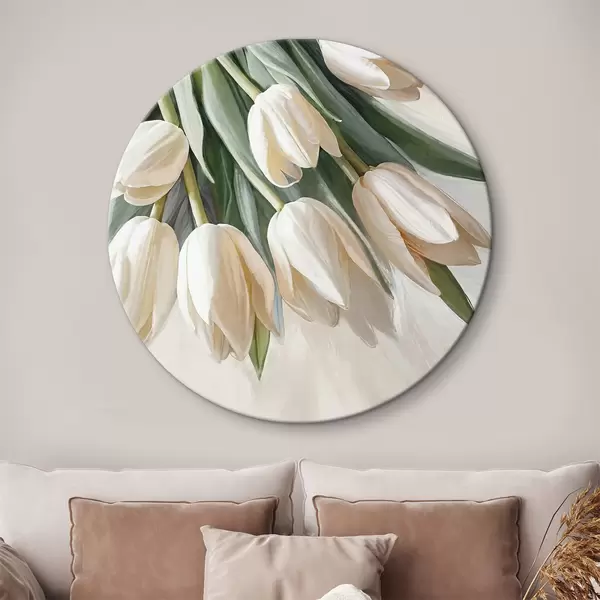 Quadri rotondi Primo piano di tulipani bianchi r38271