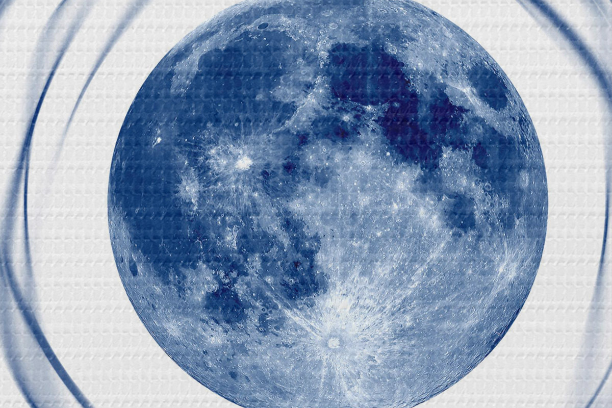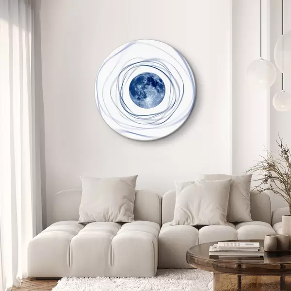Quadri rotondi Un pianeta blu circondato da un cerchio che gira r38279