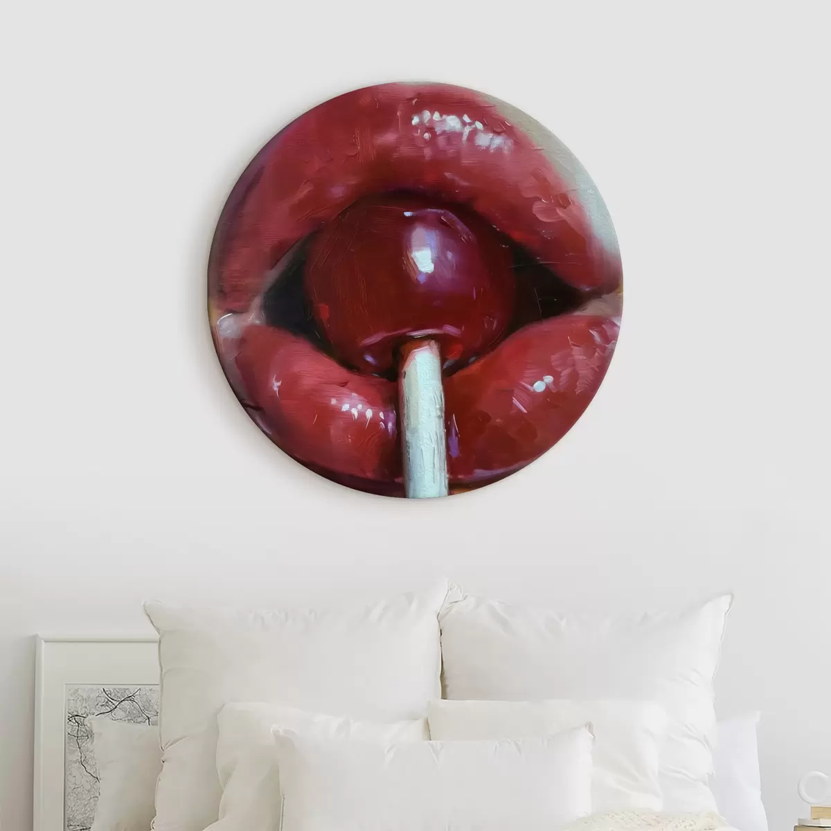 Quadri rotondi Primo piano della bocca con lecca-lecca r38293