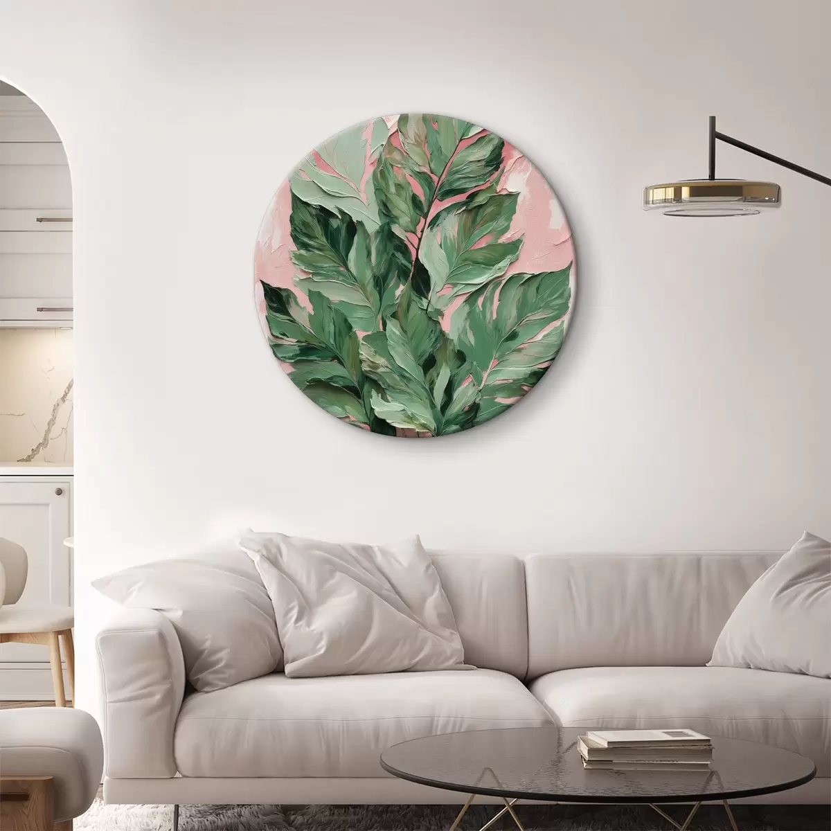 Quadri rotondi Immagine di foglie su sfondo rosa r38307