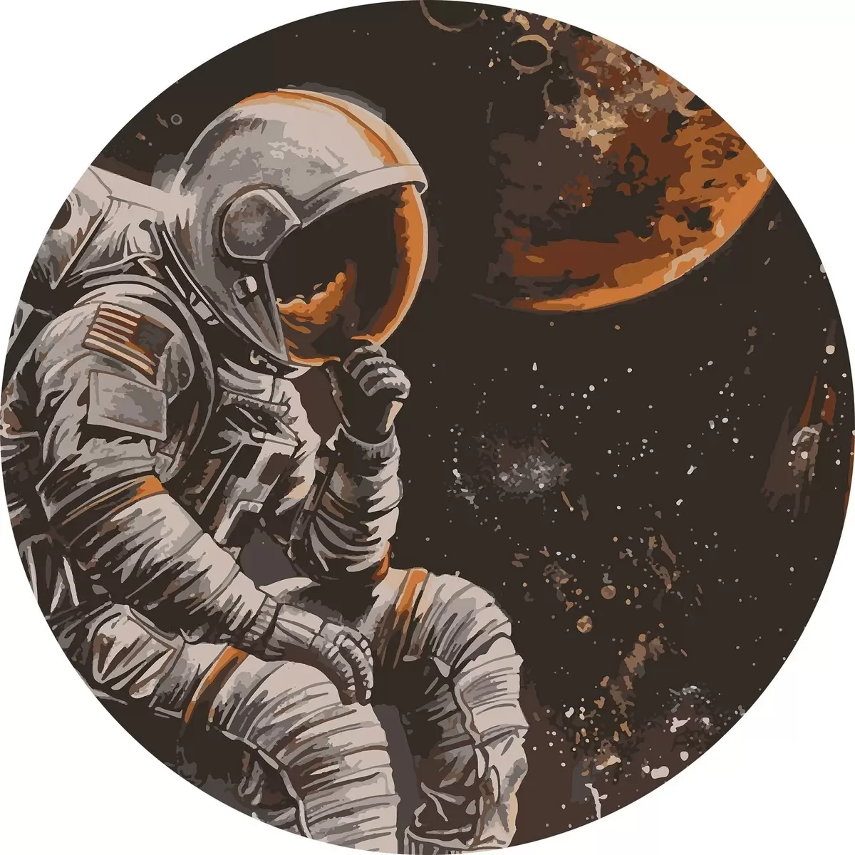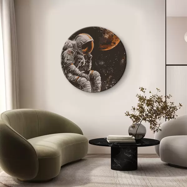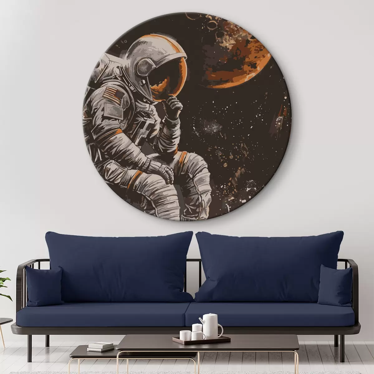 Quadri rotondi Astronauta seduto su una roccia r38316