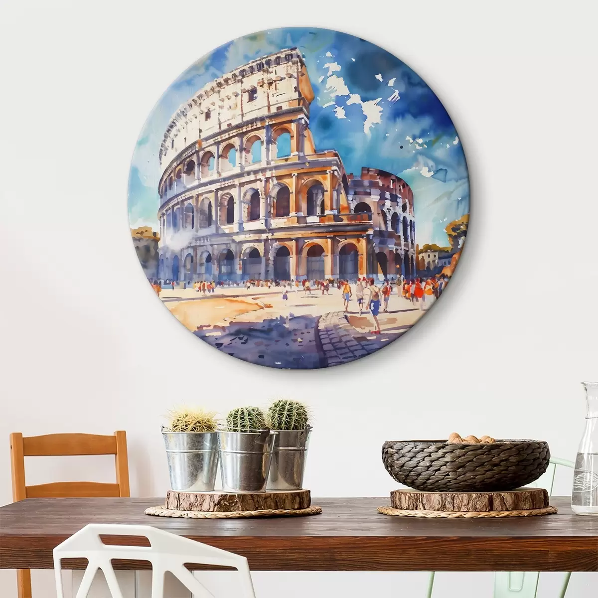 Quadri rotondi Acquerello di un grande edificio con molti archi r38326