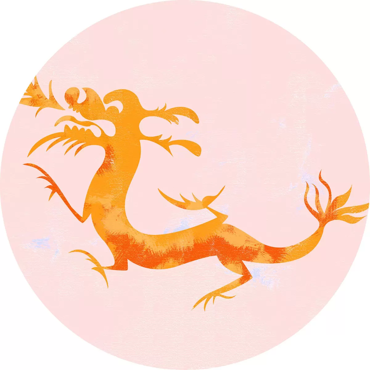 Quadri rotondi Drago arancione con una lunga coda r38336