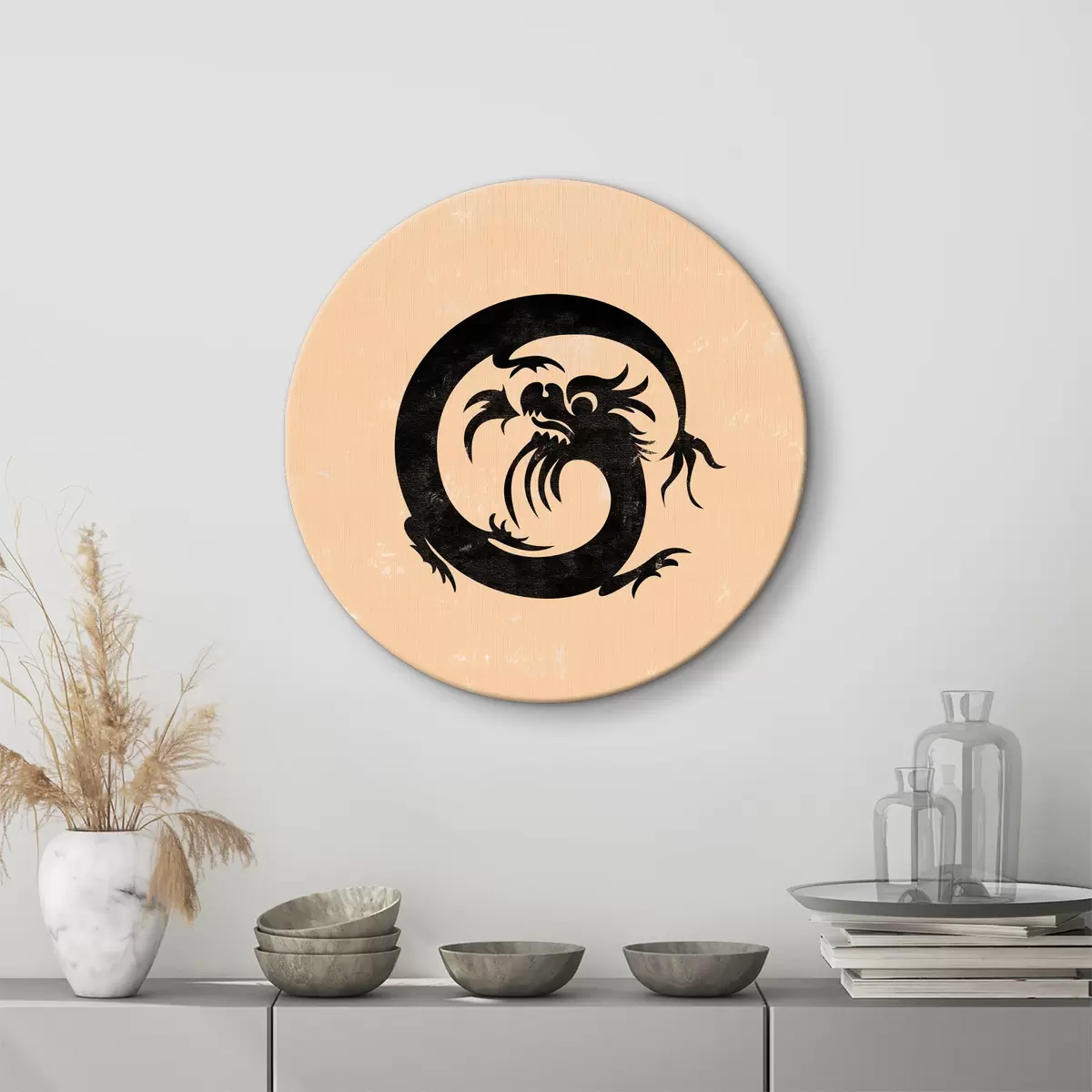 Quadri rotondi Drago nero con una lunga coda r38339