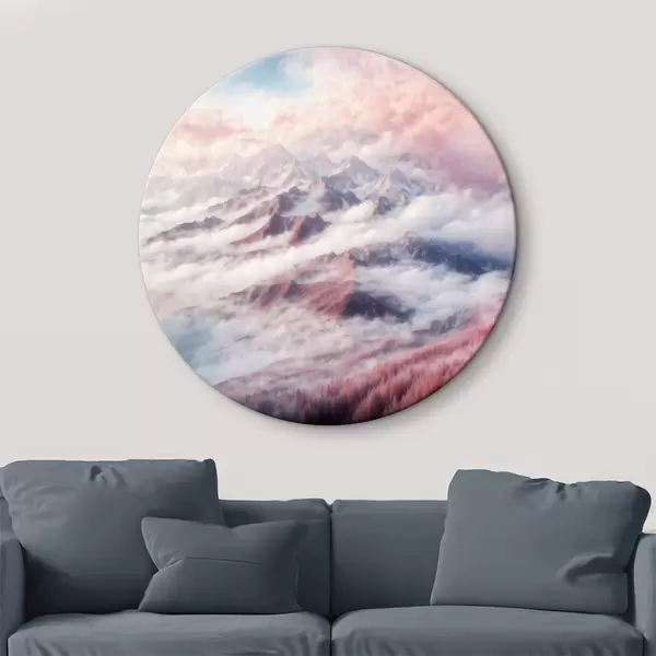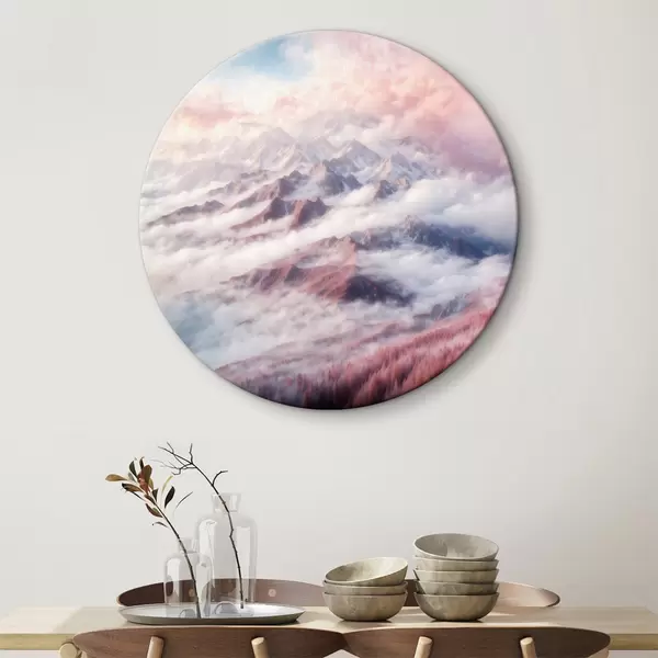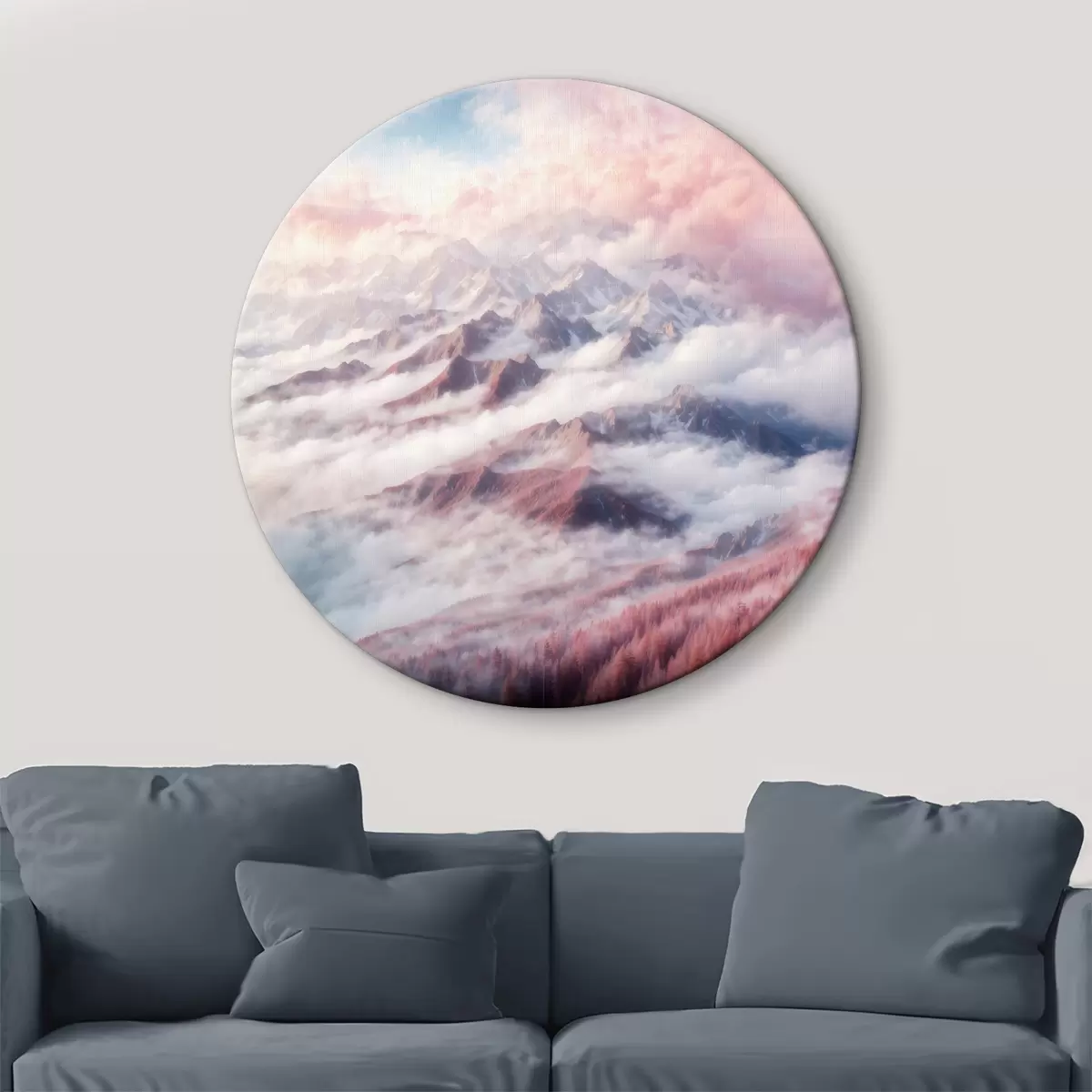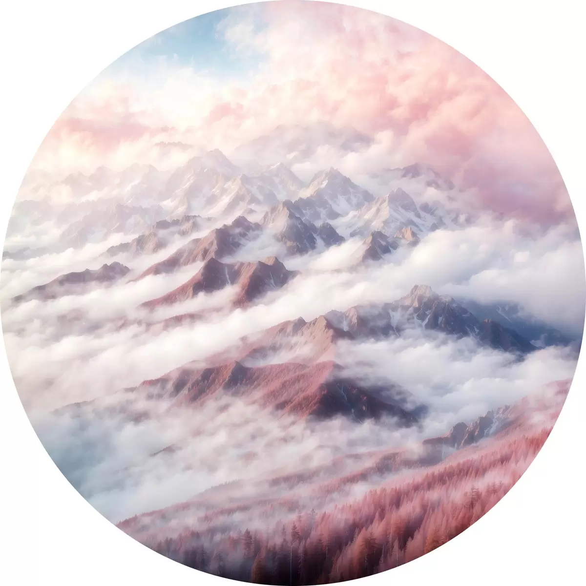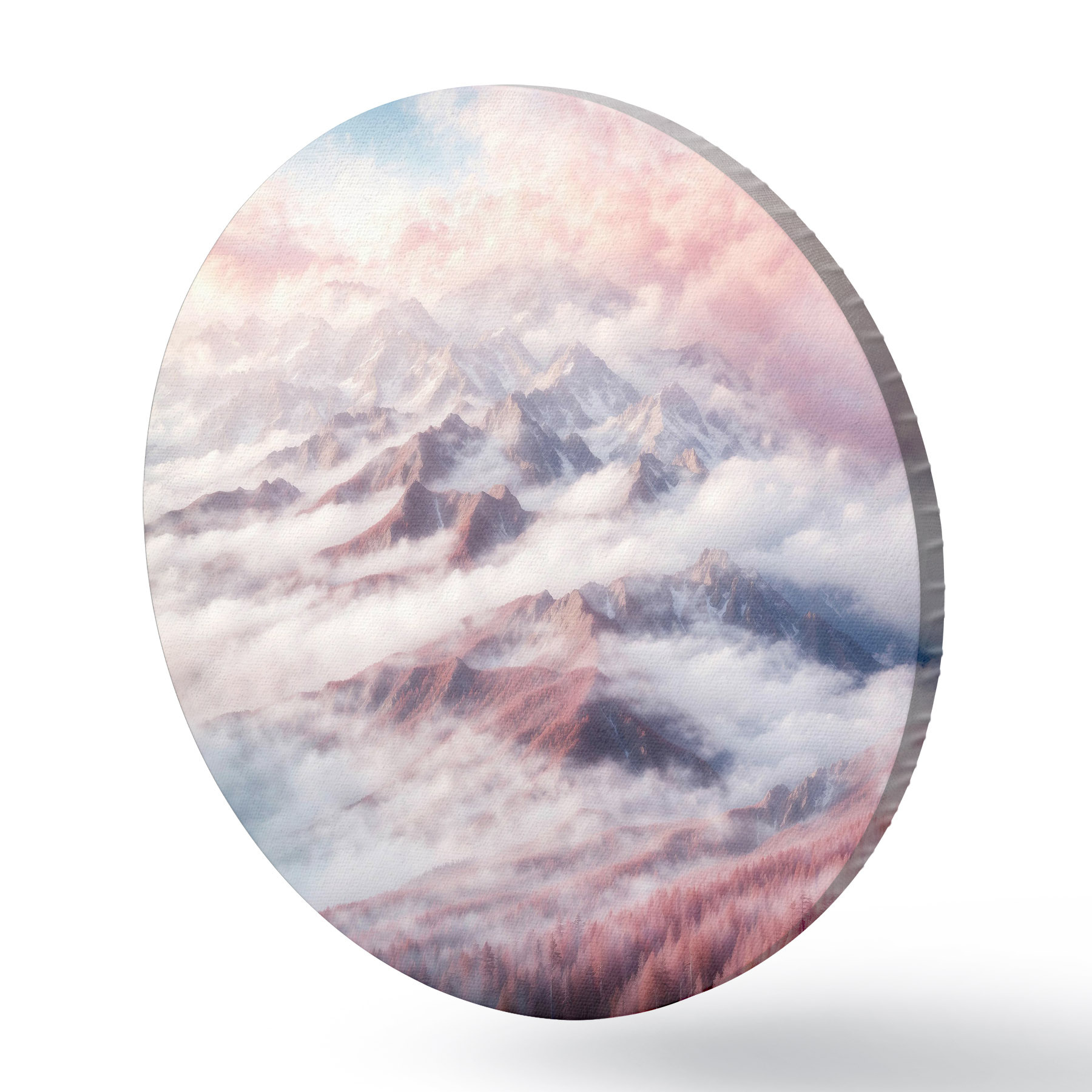 Quadri rotondi Catena montuosa con nuvole e alberi r38358