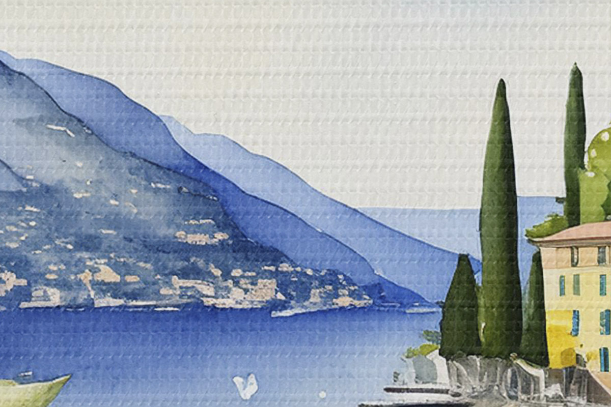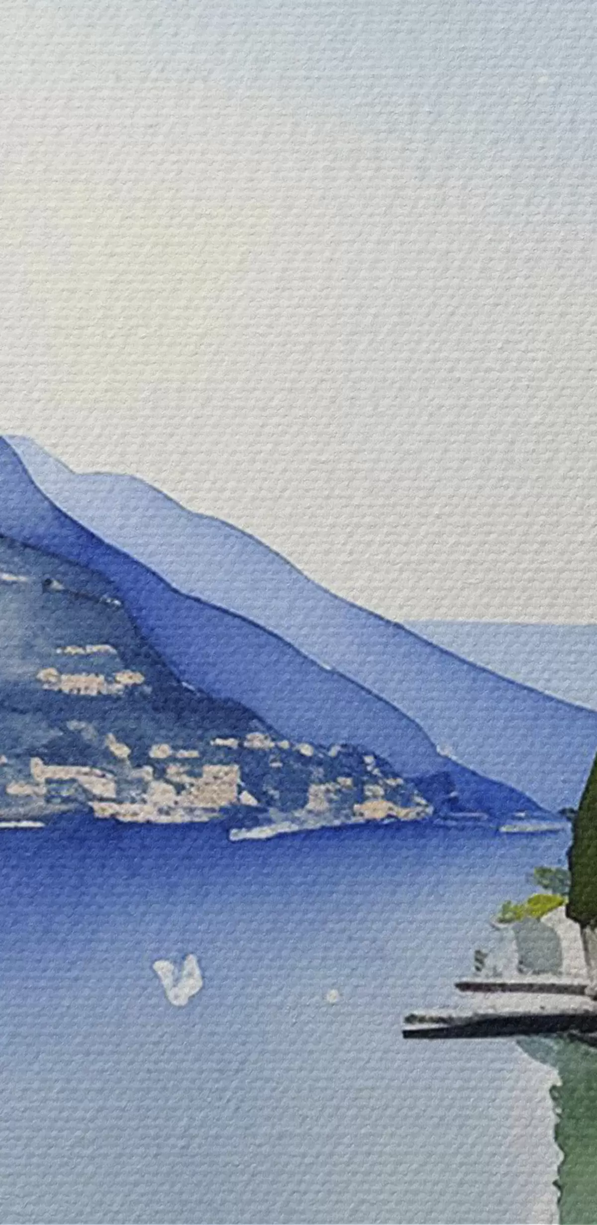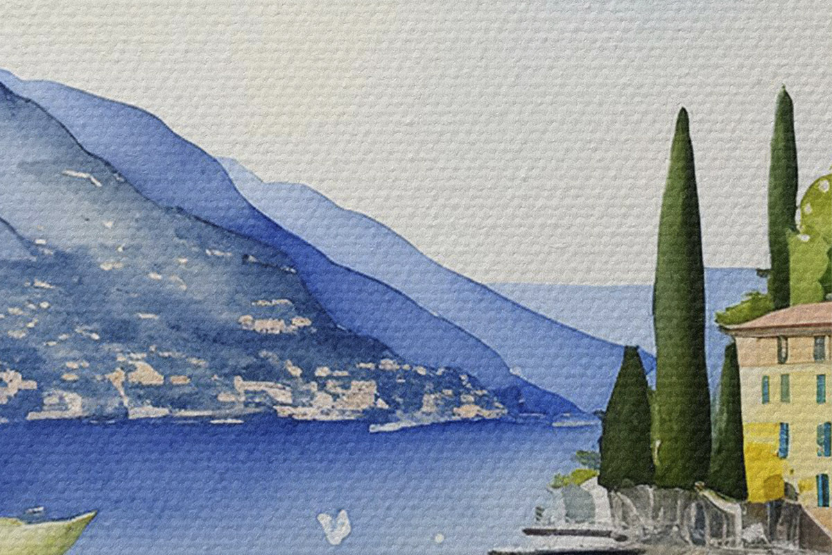 Immagine Lago italiano, estate, acquerello, paesaggio naturale, limoni, architettura cittadina Nr r38394