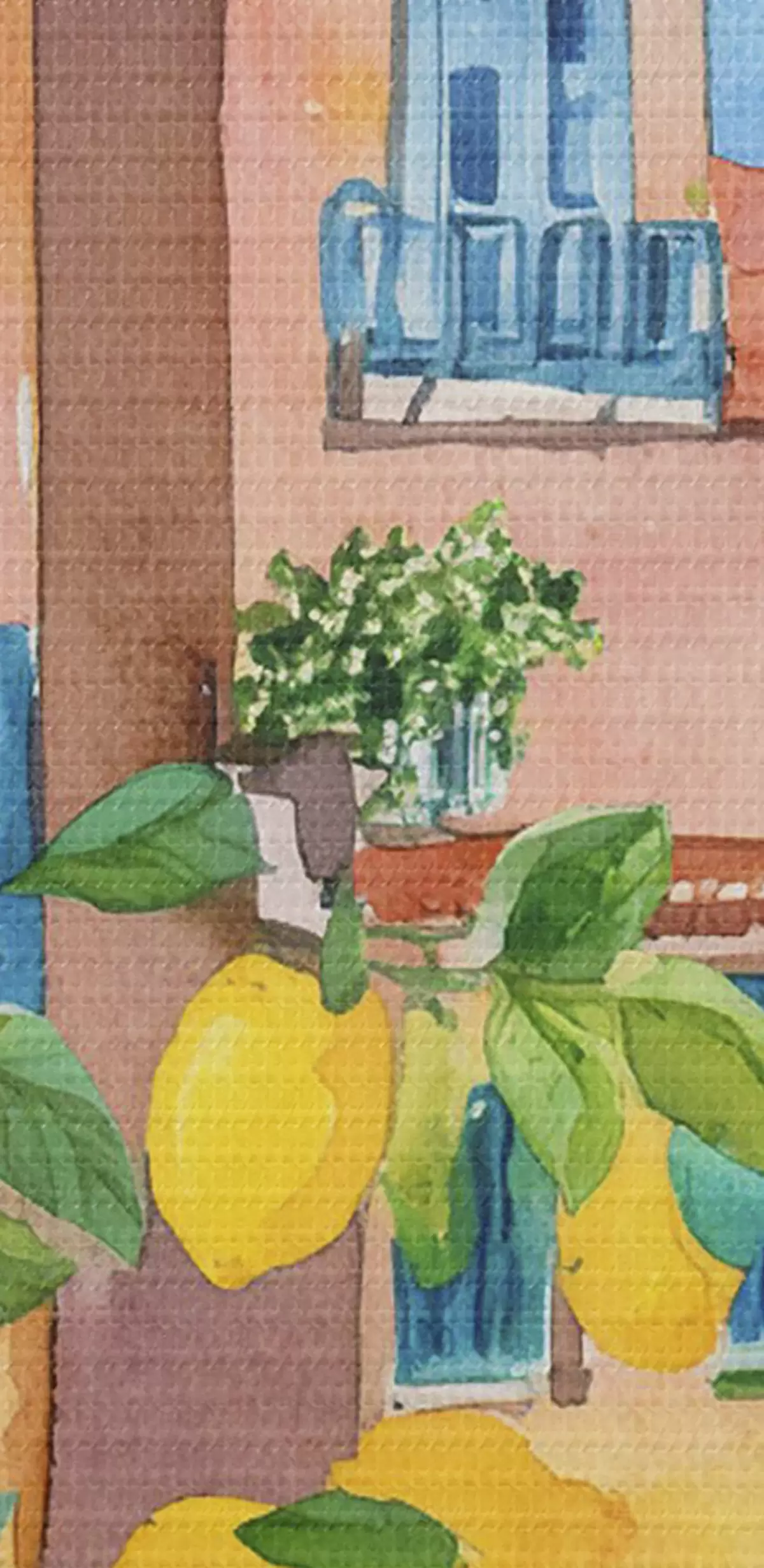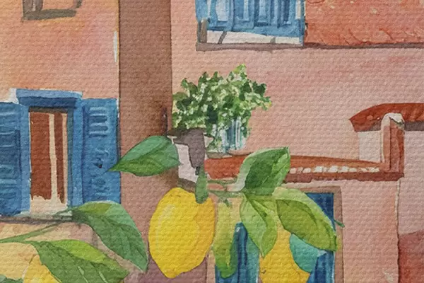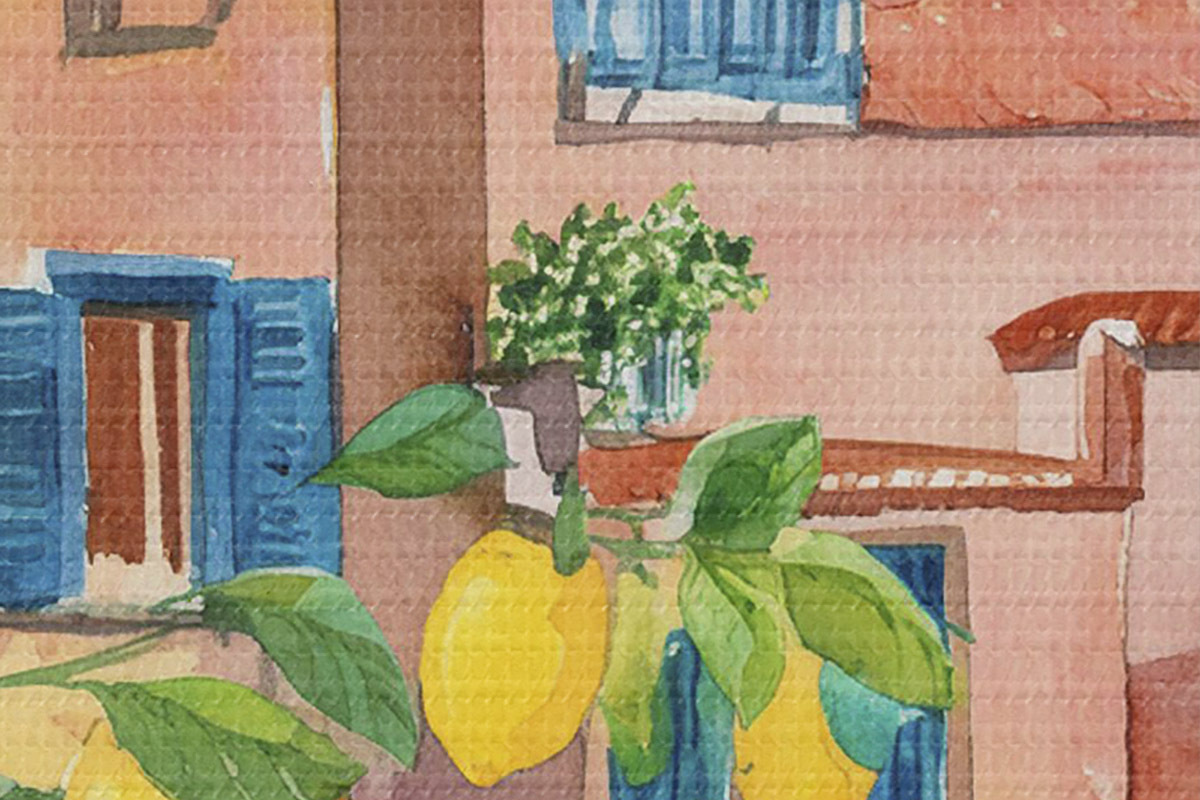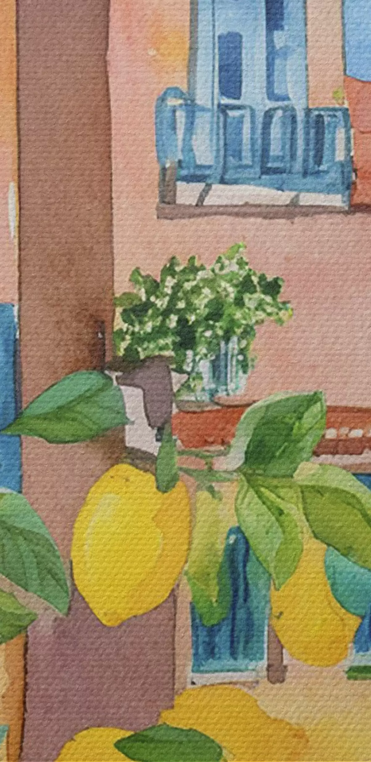 Immagine Architettura della città italiana, costa del mare, estate, acquerello, albero di limone Nr r38395