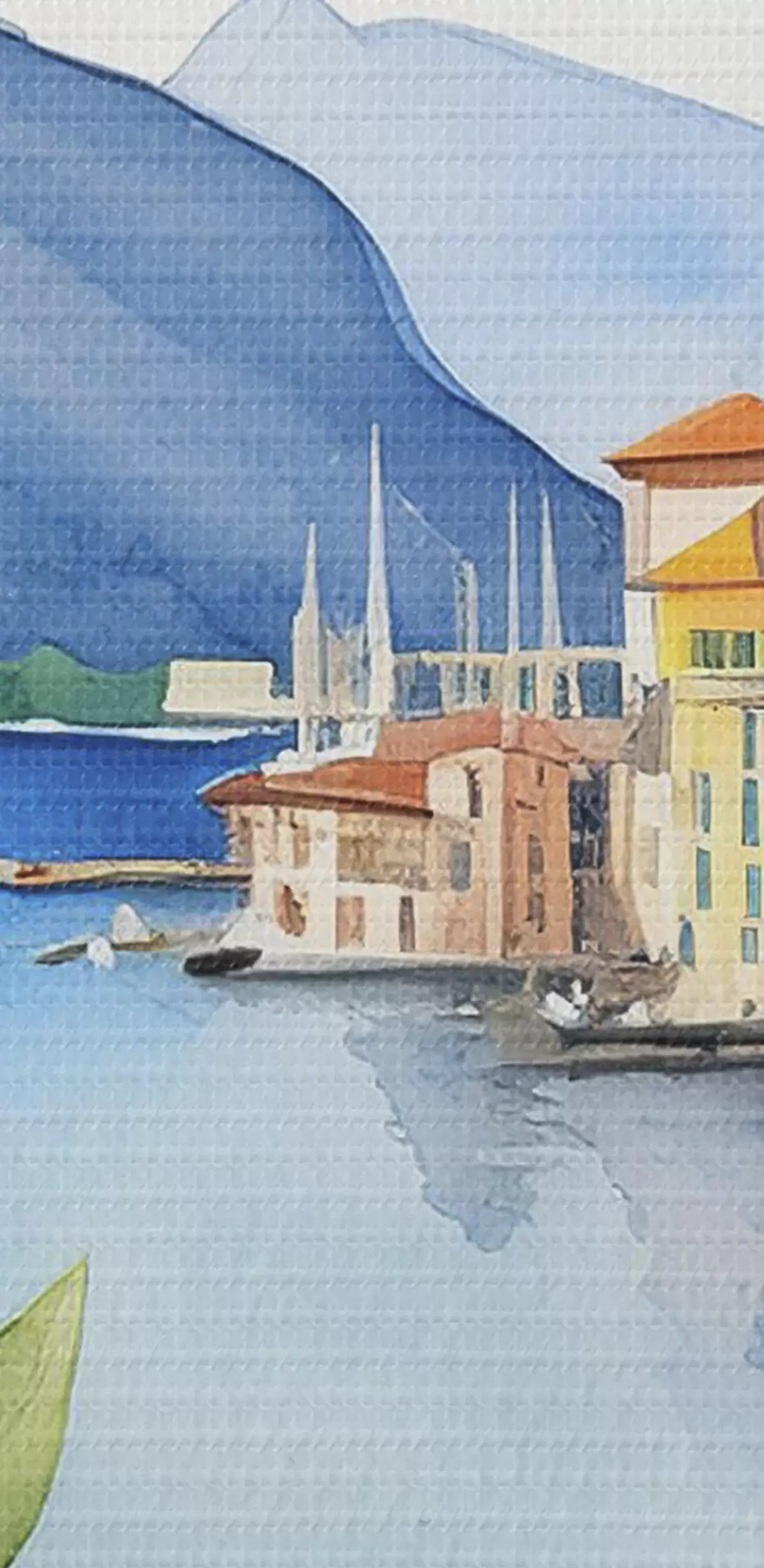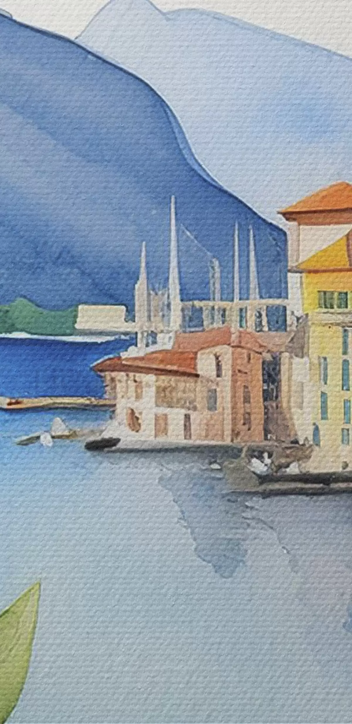 Immagine Lago italiano, estate, acquerello, paesaggio naturale, limoni, architettura cittadina Nr r38397