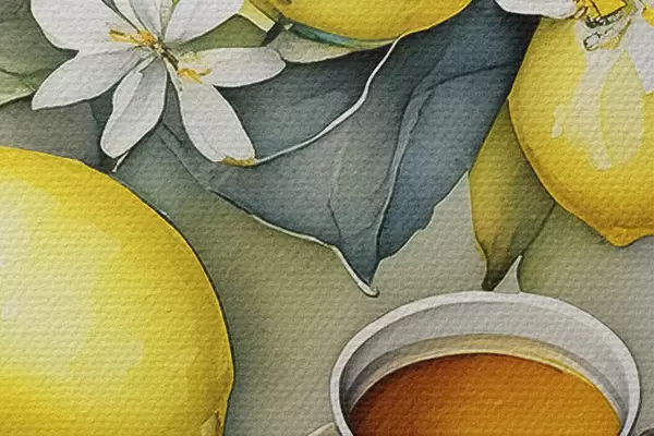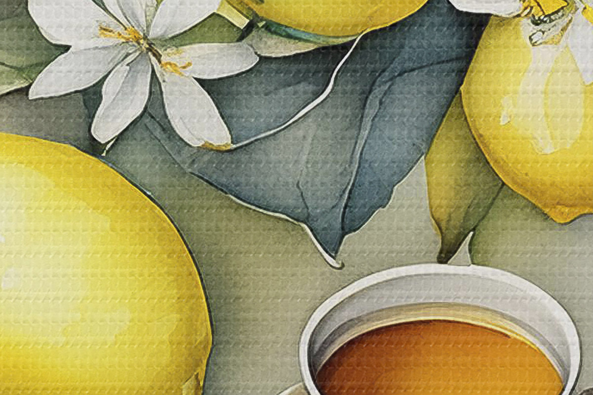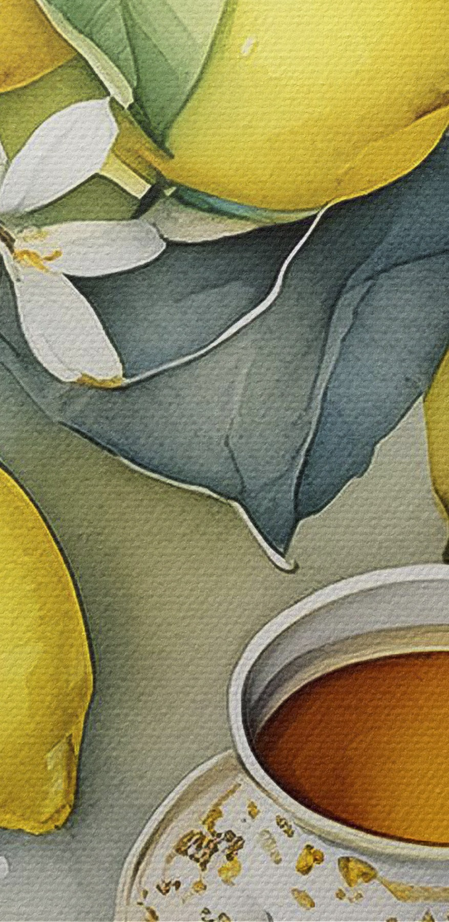 Immagine Limoni e fiori, acquerello, colazione, tazza di tè, stile bohémien Nr r38403