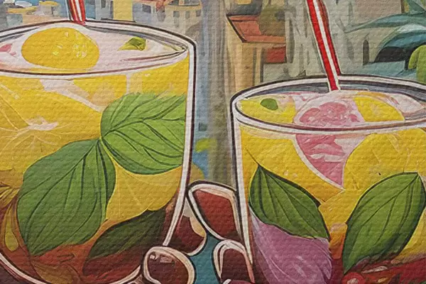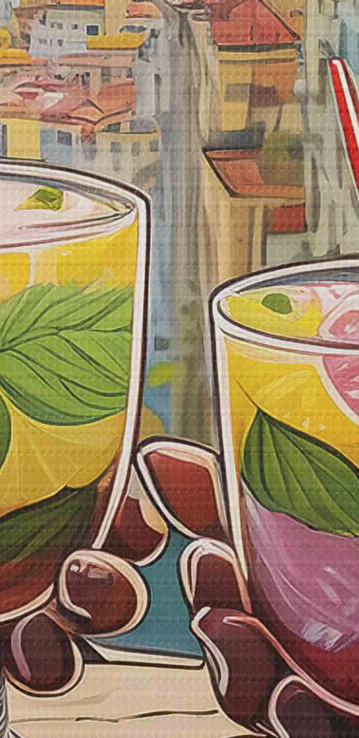 Immagine Coppia di mani che reggono bicchieri con frutta e foglie Nr r38405