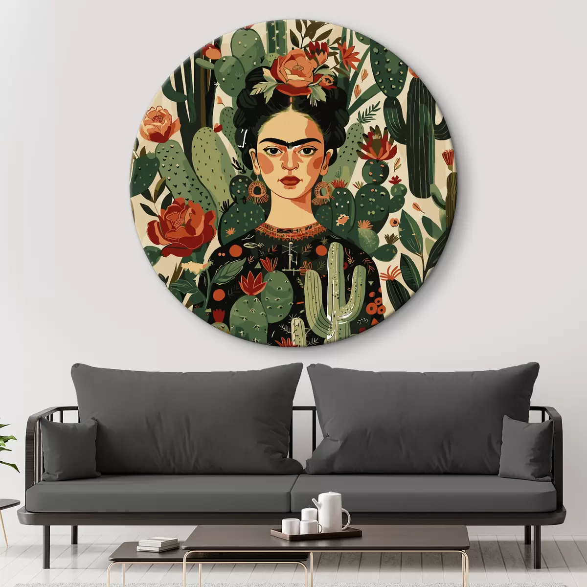 Quadri rotondi Frida sullo sfondo di un disegno di cactus r38415