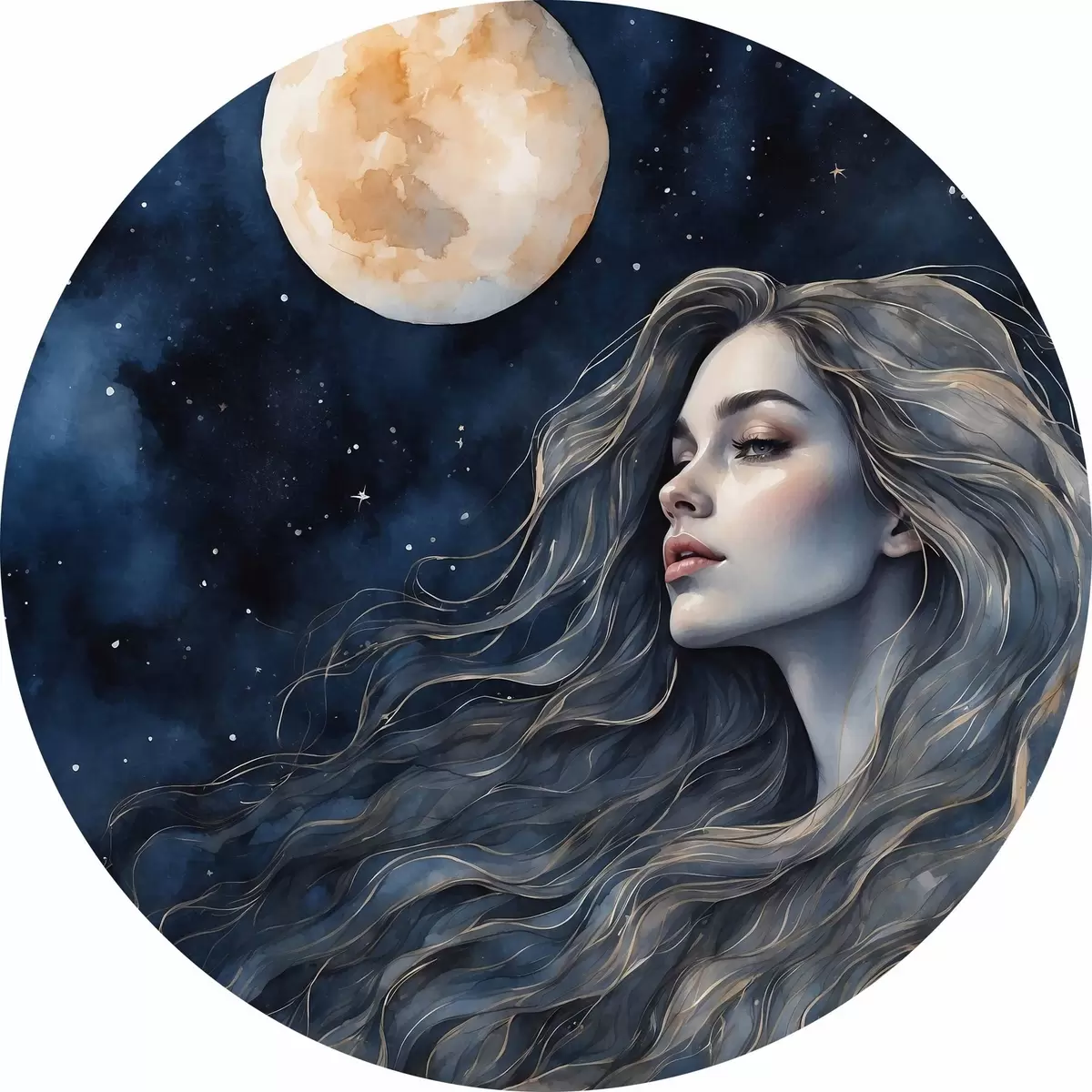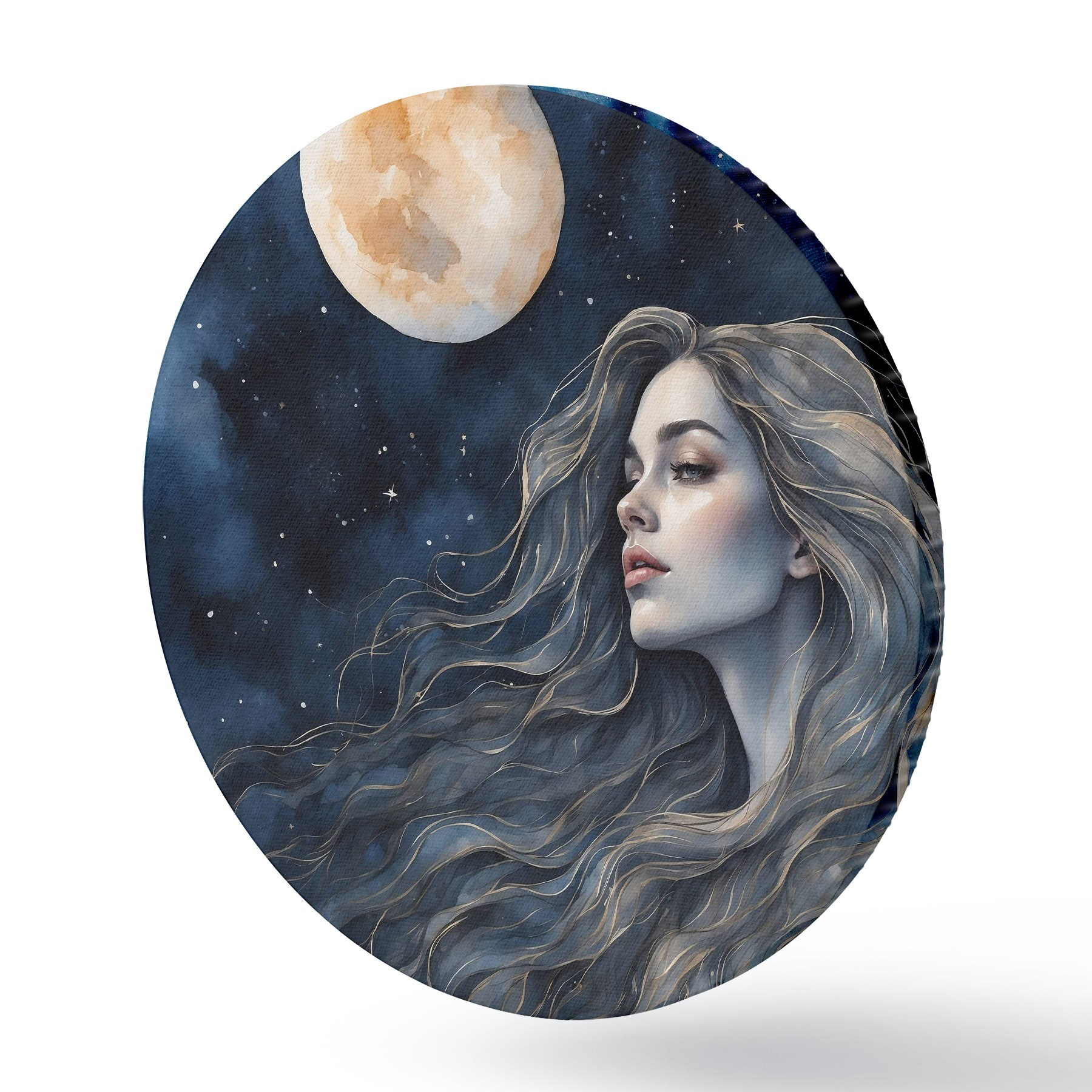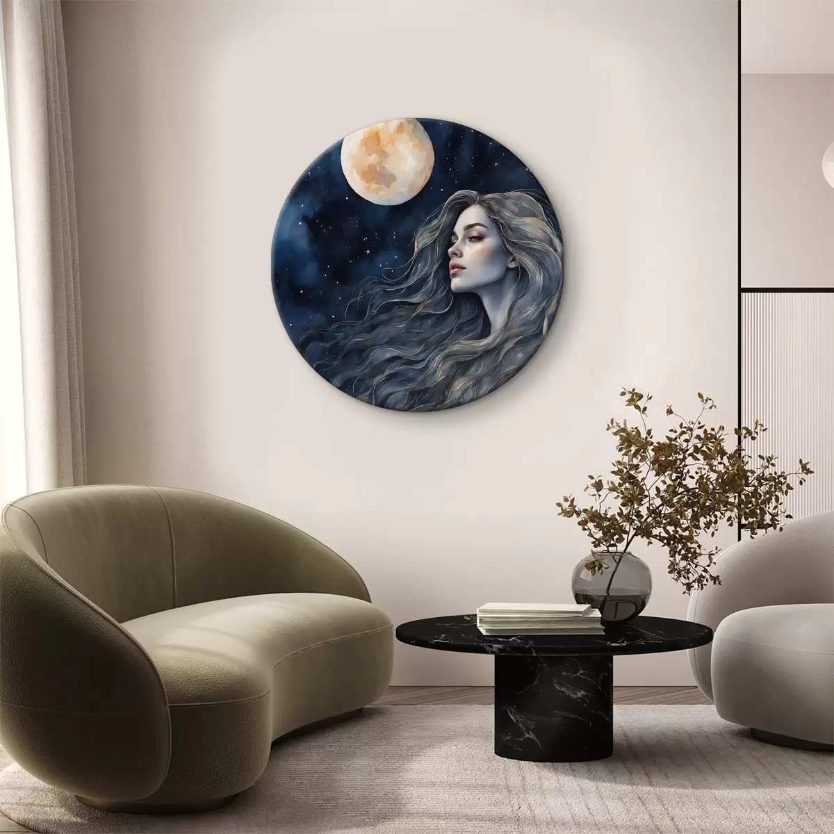 Quadri rotondi Donna con i capelli lunghi e la luna r38438