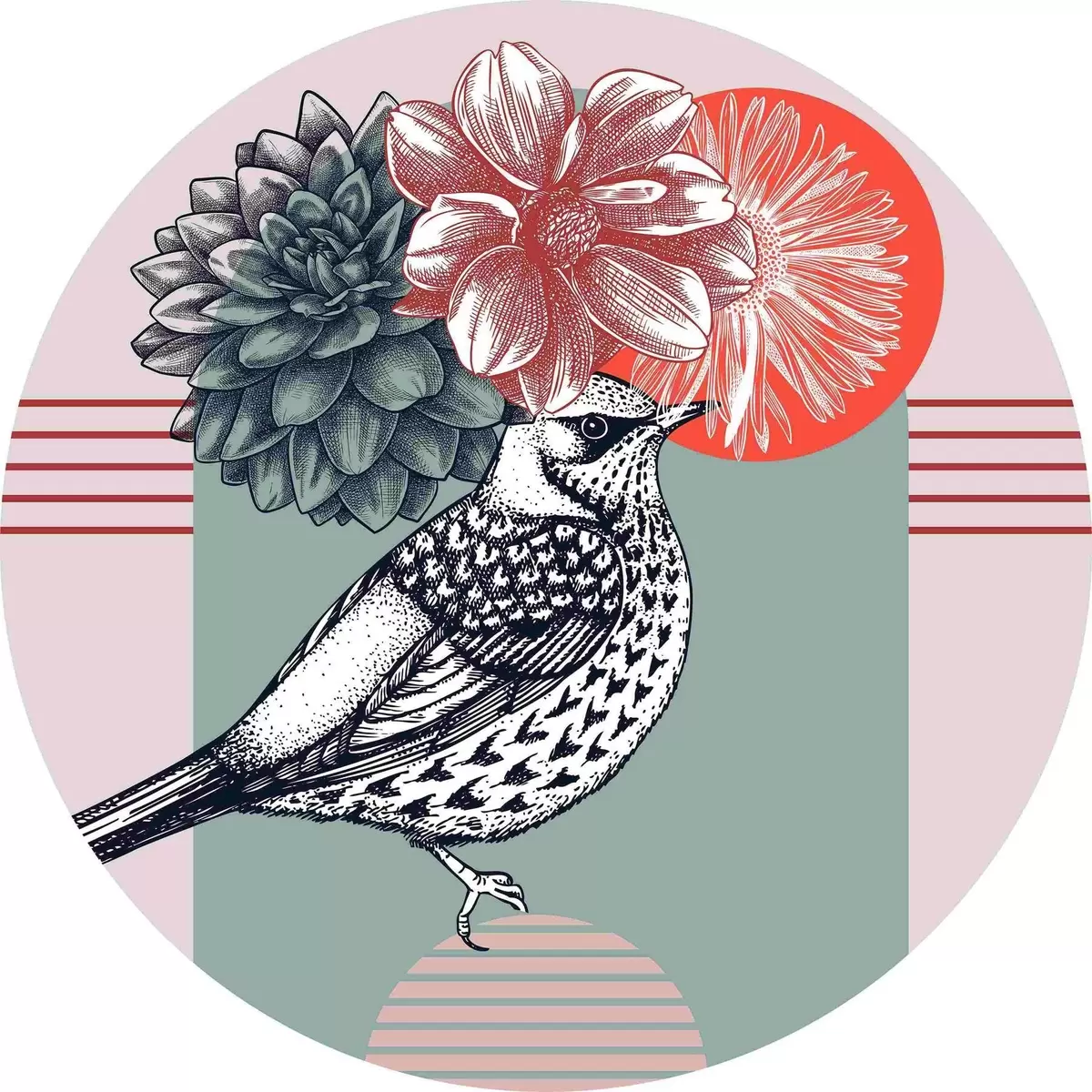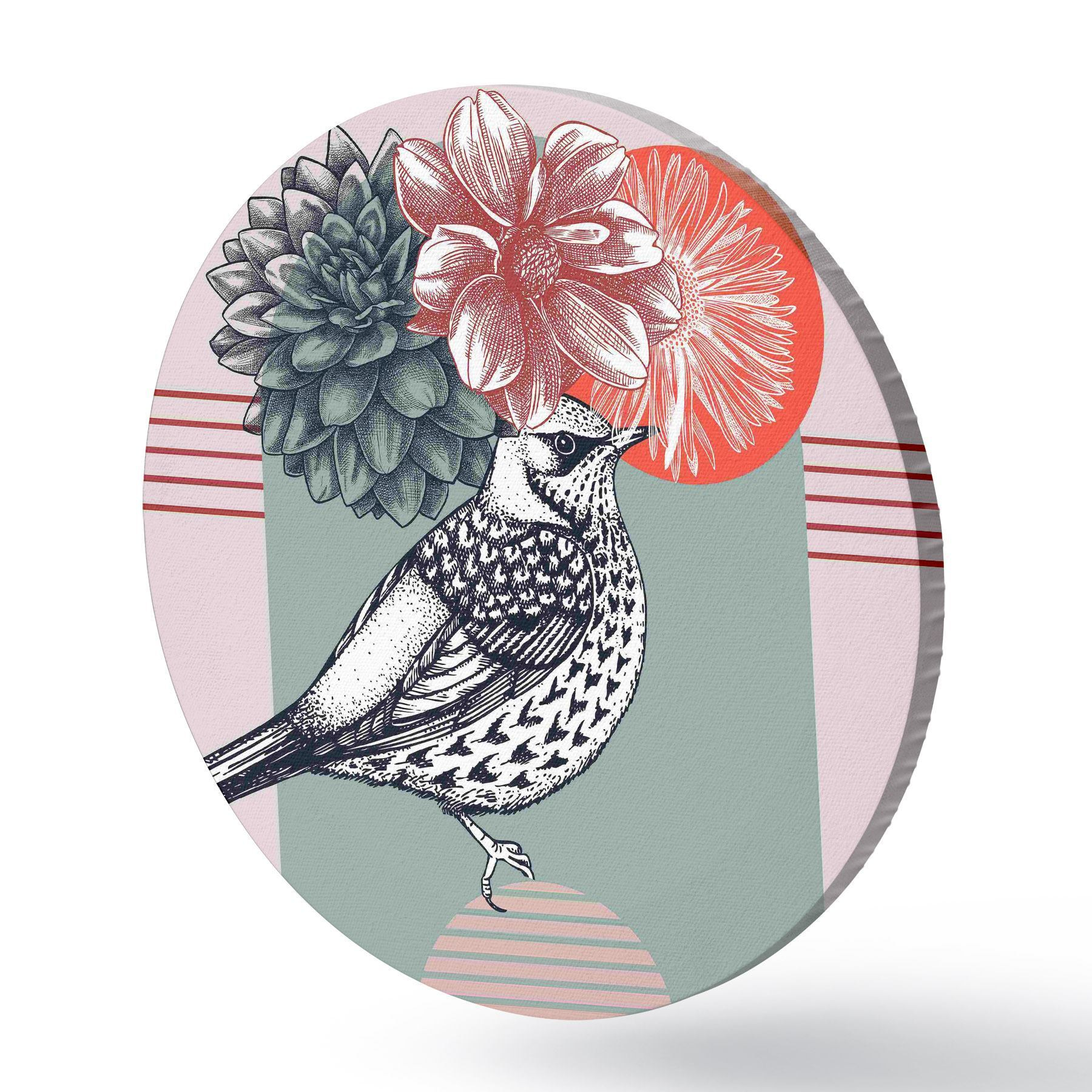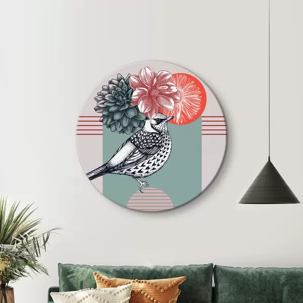Quadri rotondi Un uccello con fiori sulla testa r38442