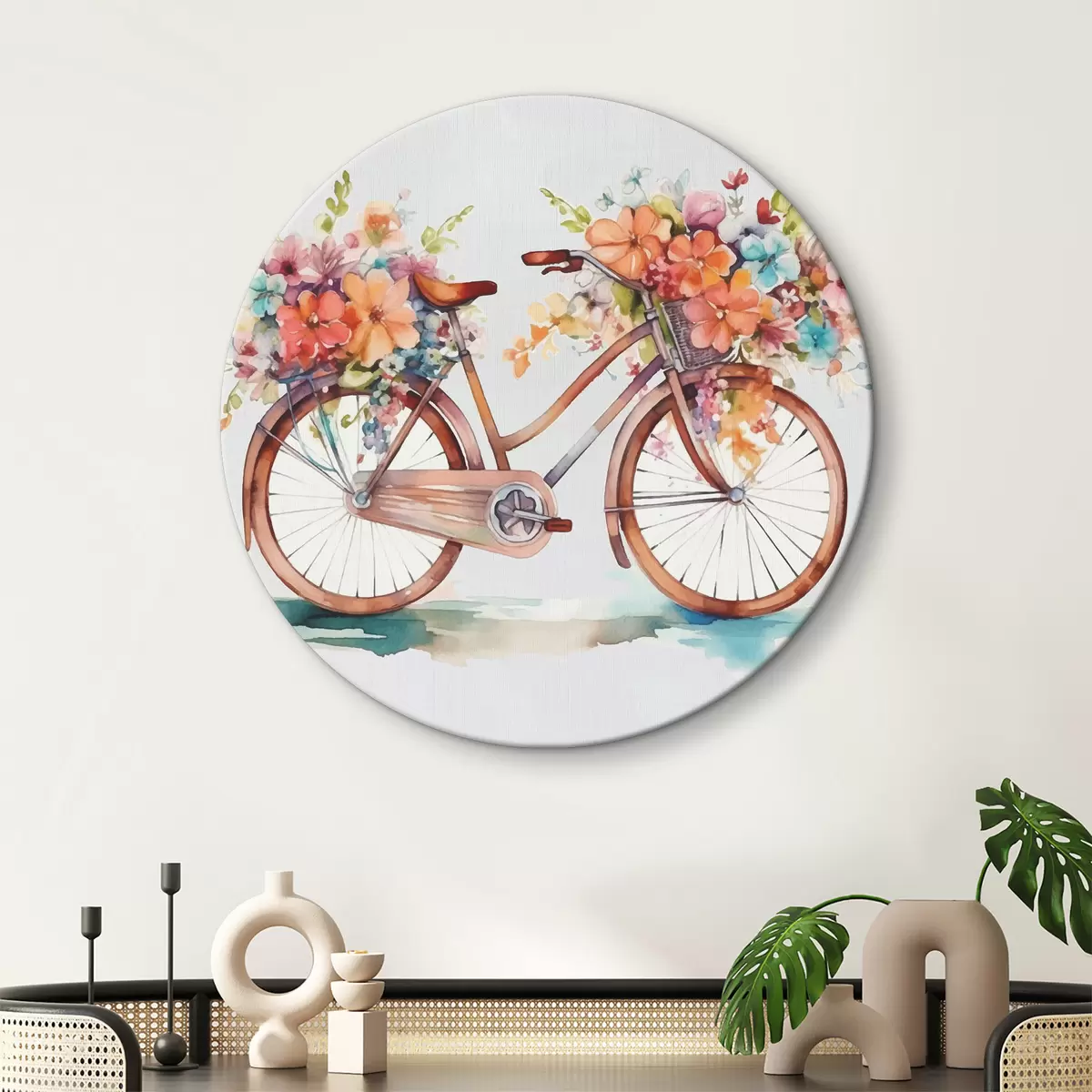 Quadri rotondi bici con colori vivaci, pittura ad acquerello r38447