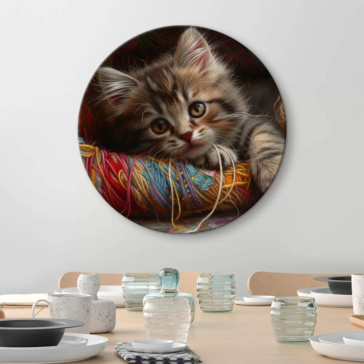 Quadri rotondi Un gatto sdraiato su un gomitolo di lana r38465