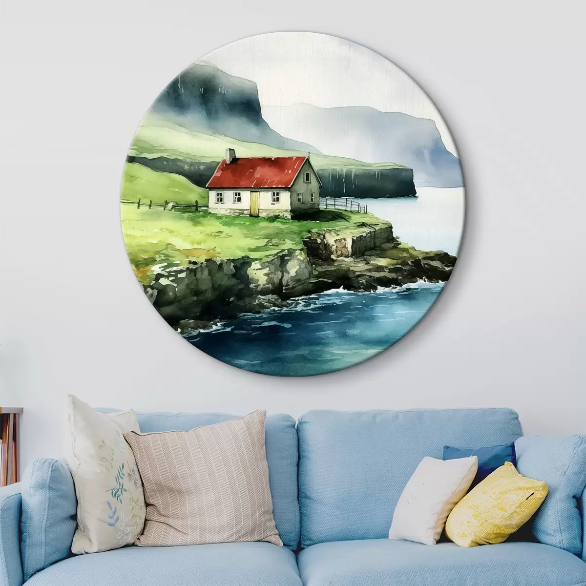 Quadri rotondi Casa su una scogliera sopra l'acqua r38478