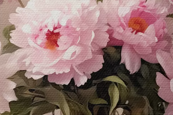 Immagine Peonie rosa in un vaso di vetro su sfondo nero, pittura a olio imitazione, fiori Nr r38482