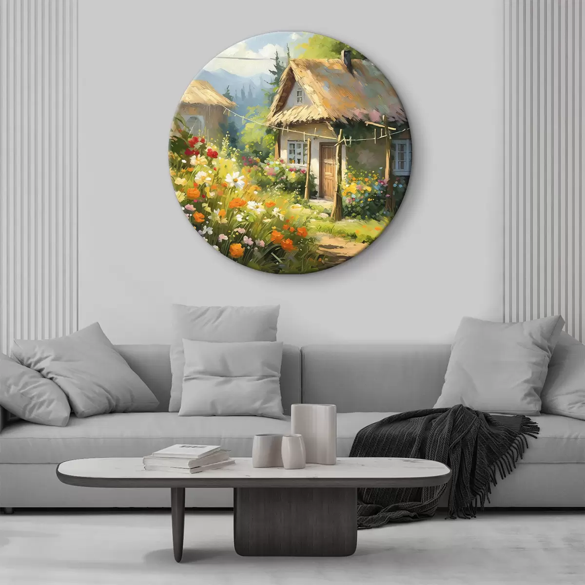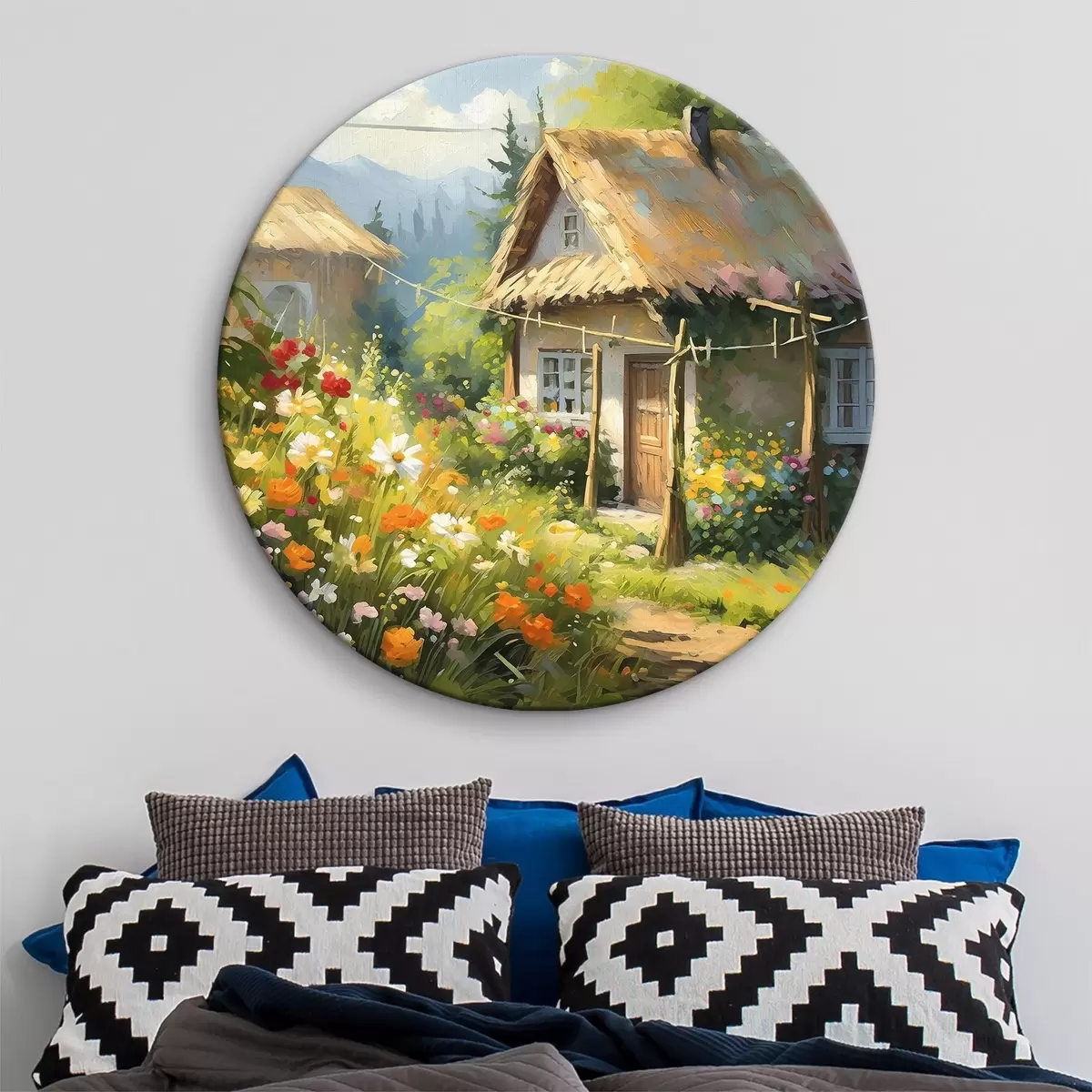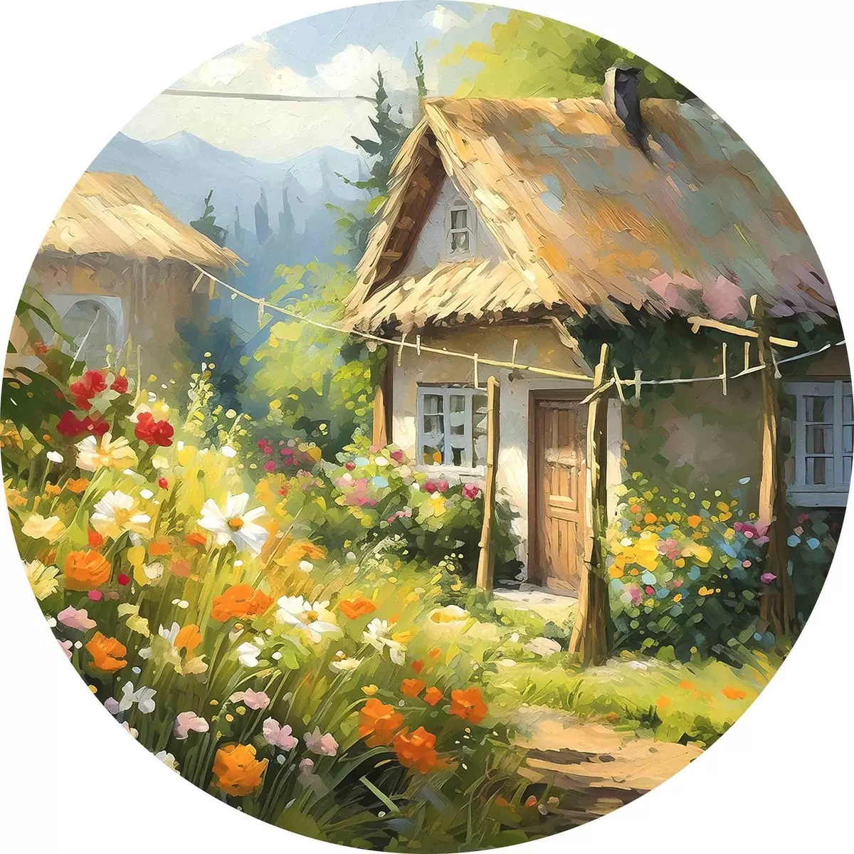 Quadri rotondi Dipingere la casa con i fiori r38493