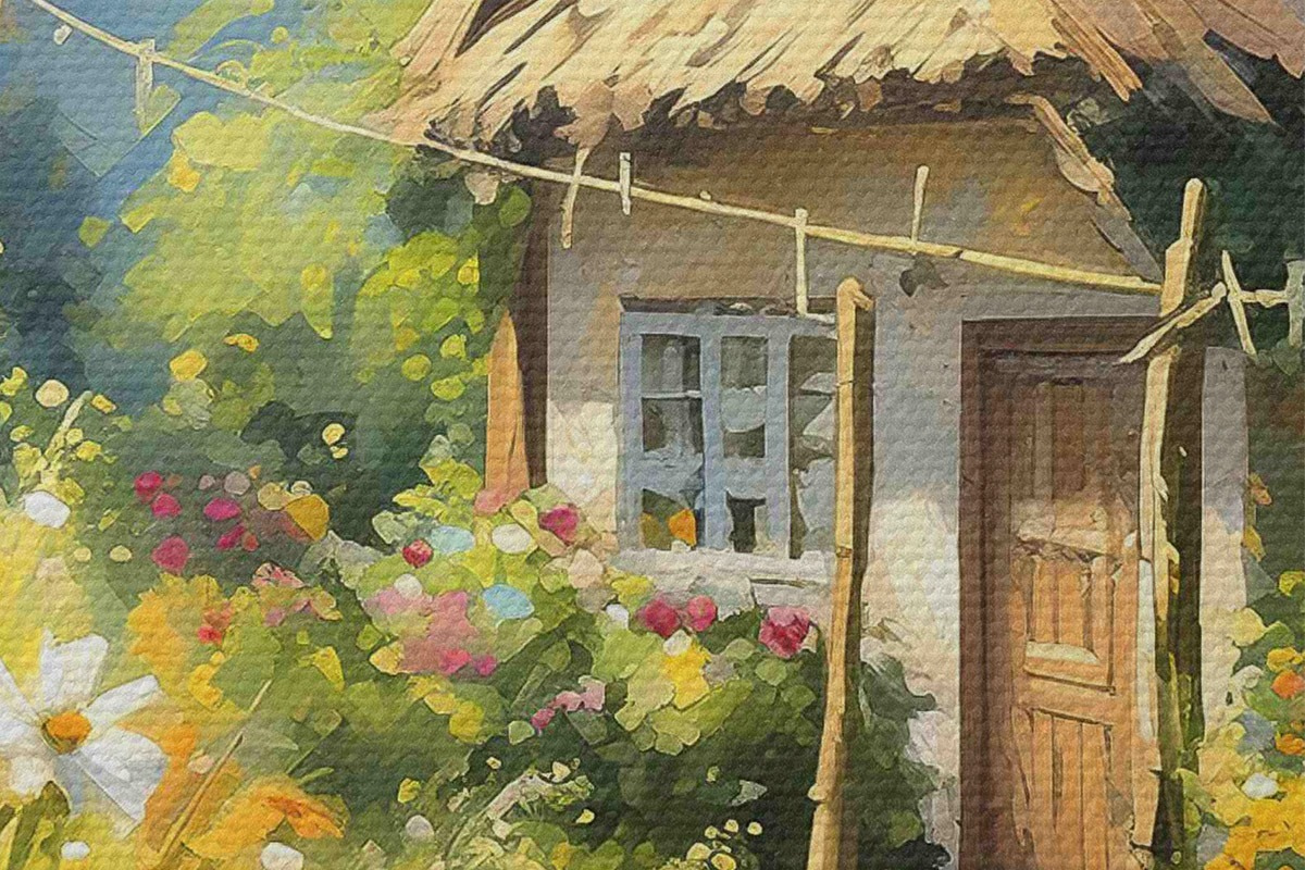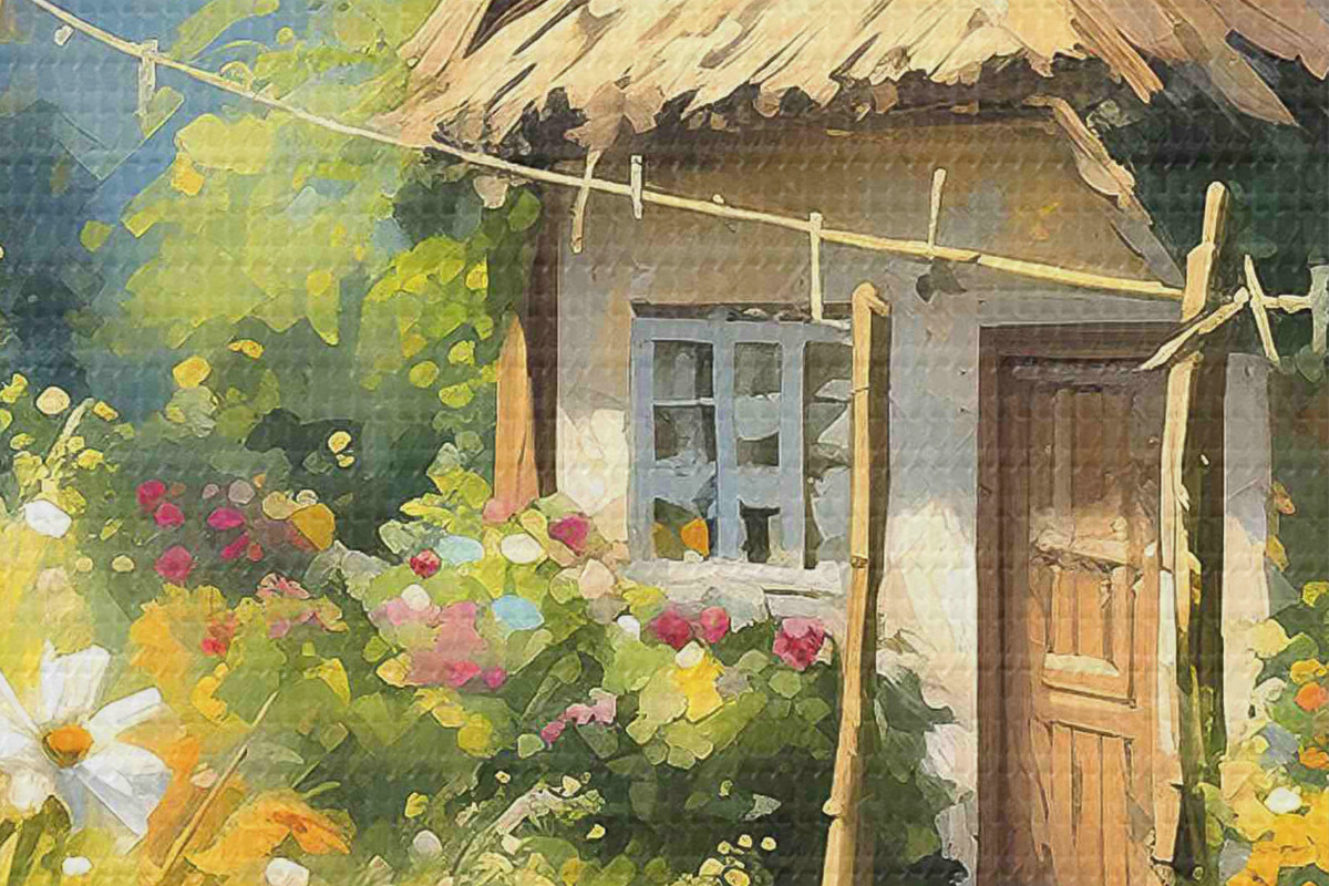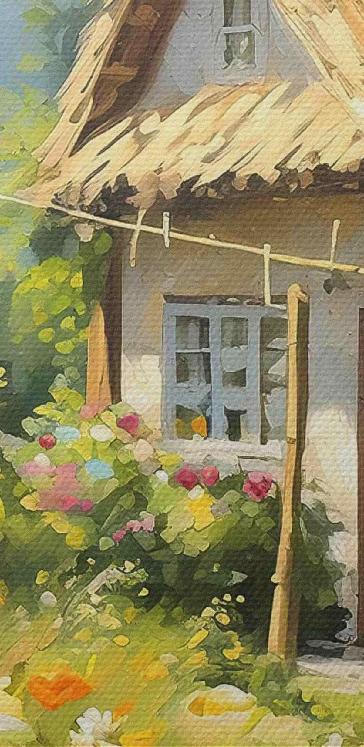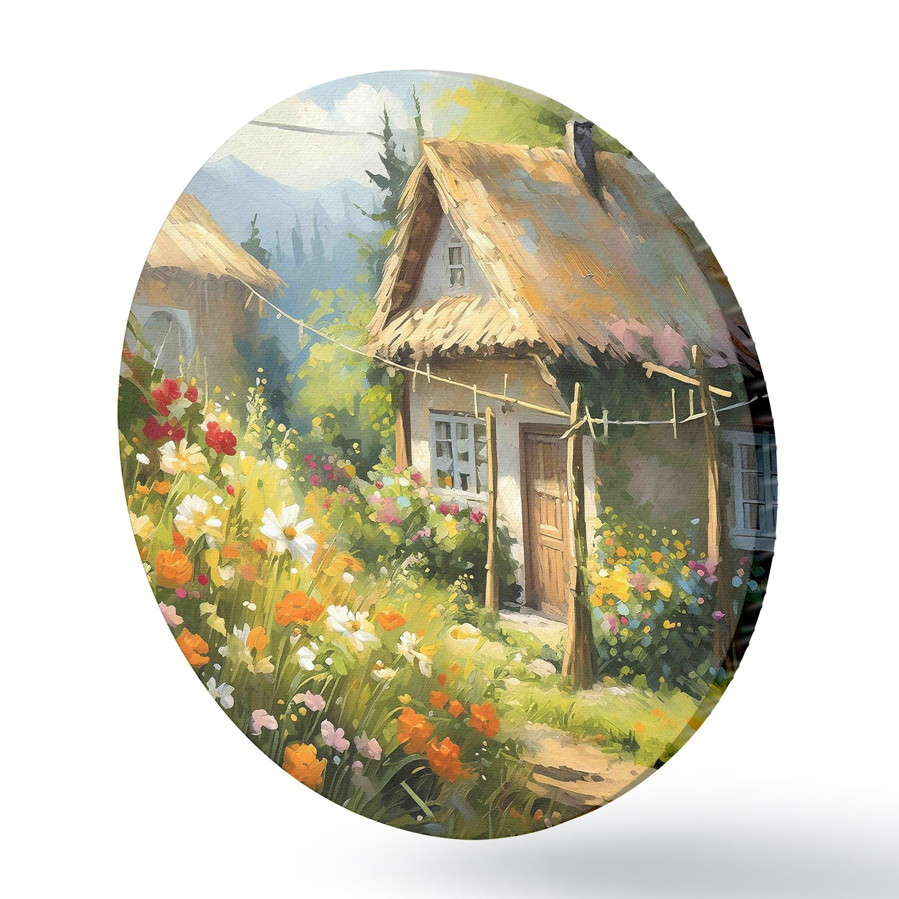 Quadri rotondi Dipingere la casa con i fiori r38493