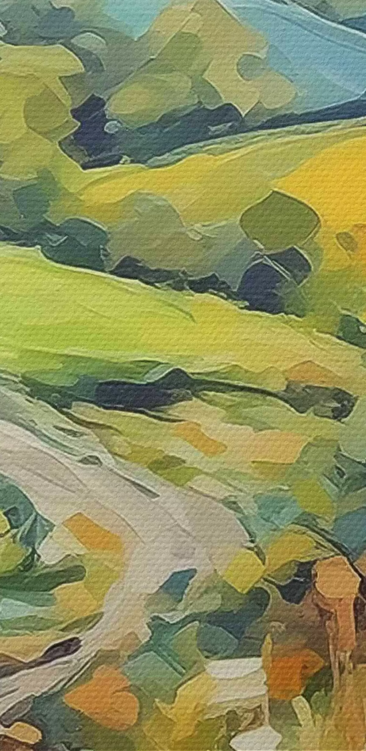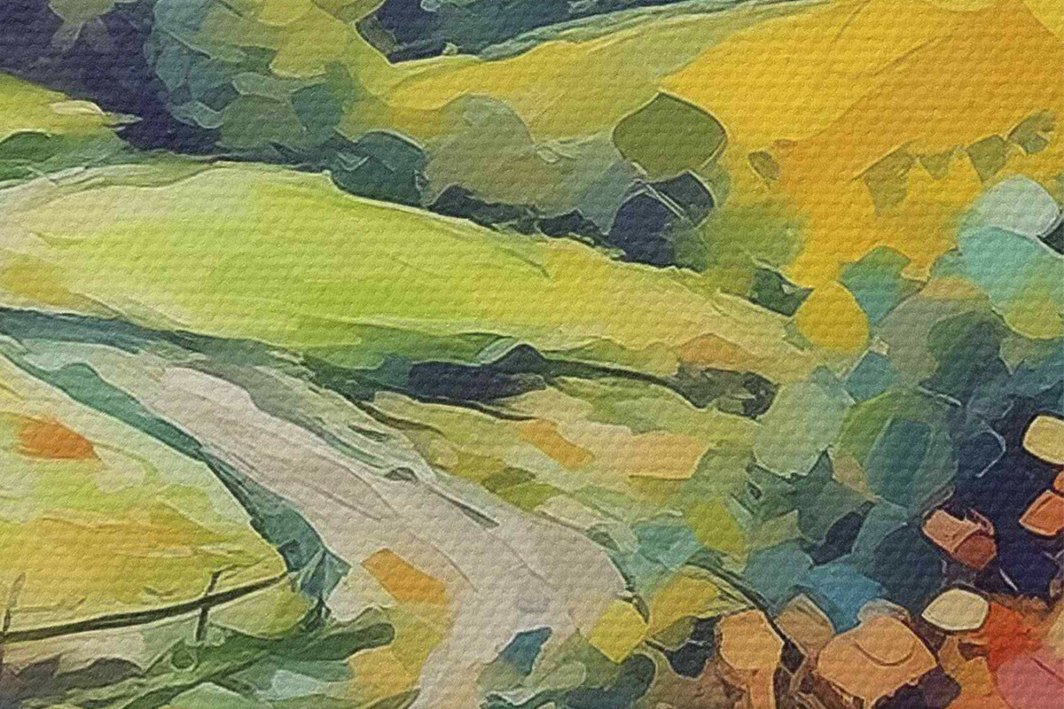 Immagine Un dipinto che mostra un paesaggio con case e campi Nr r38501