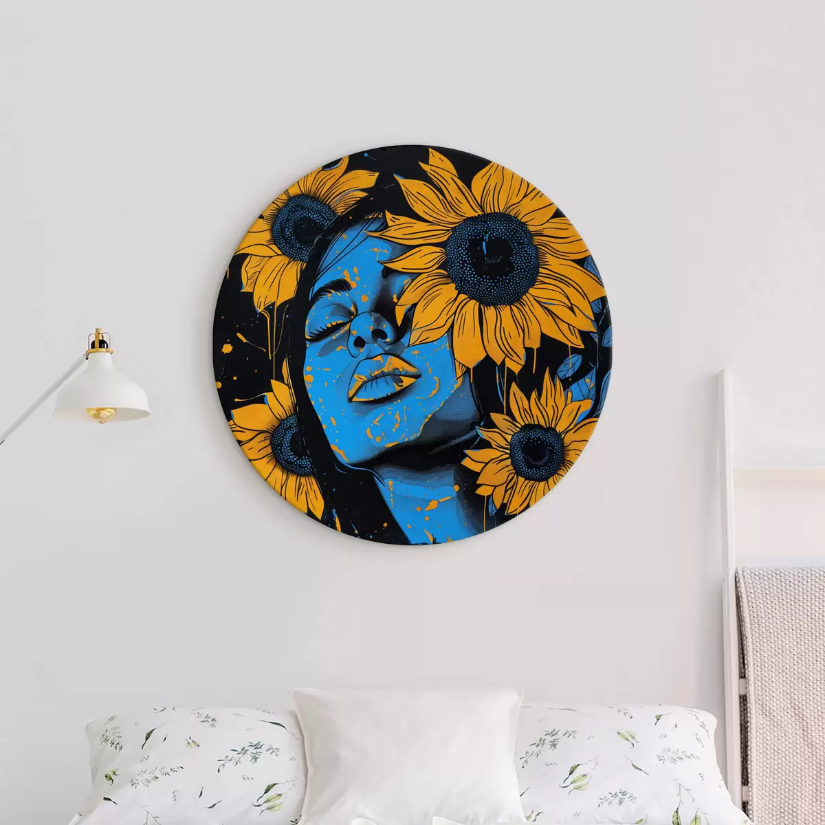 Quadri rotondi Un dipinto di donna con girasoli r38505