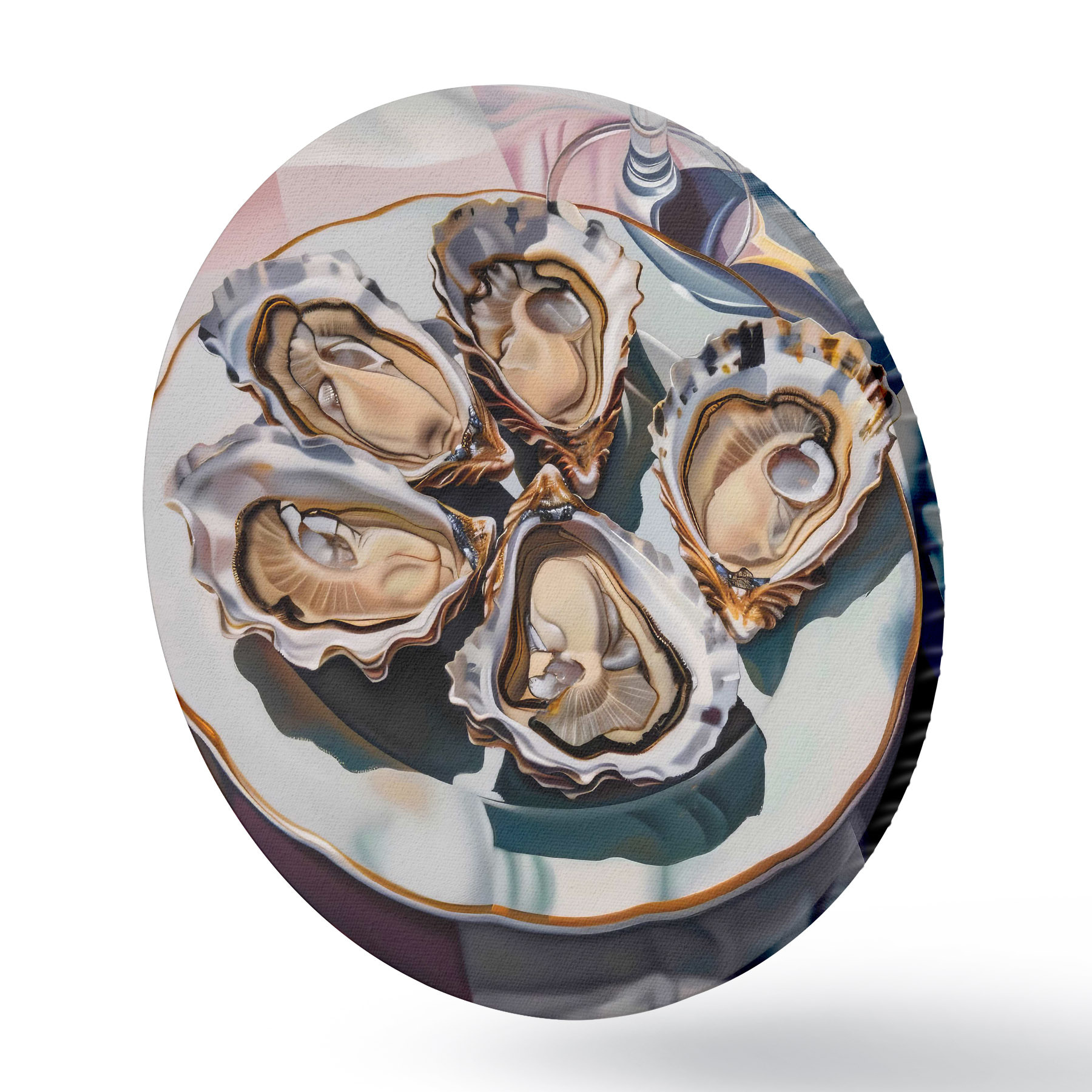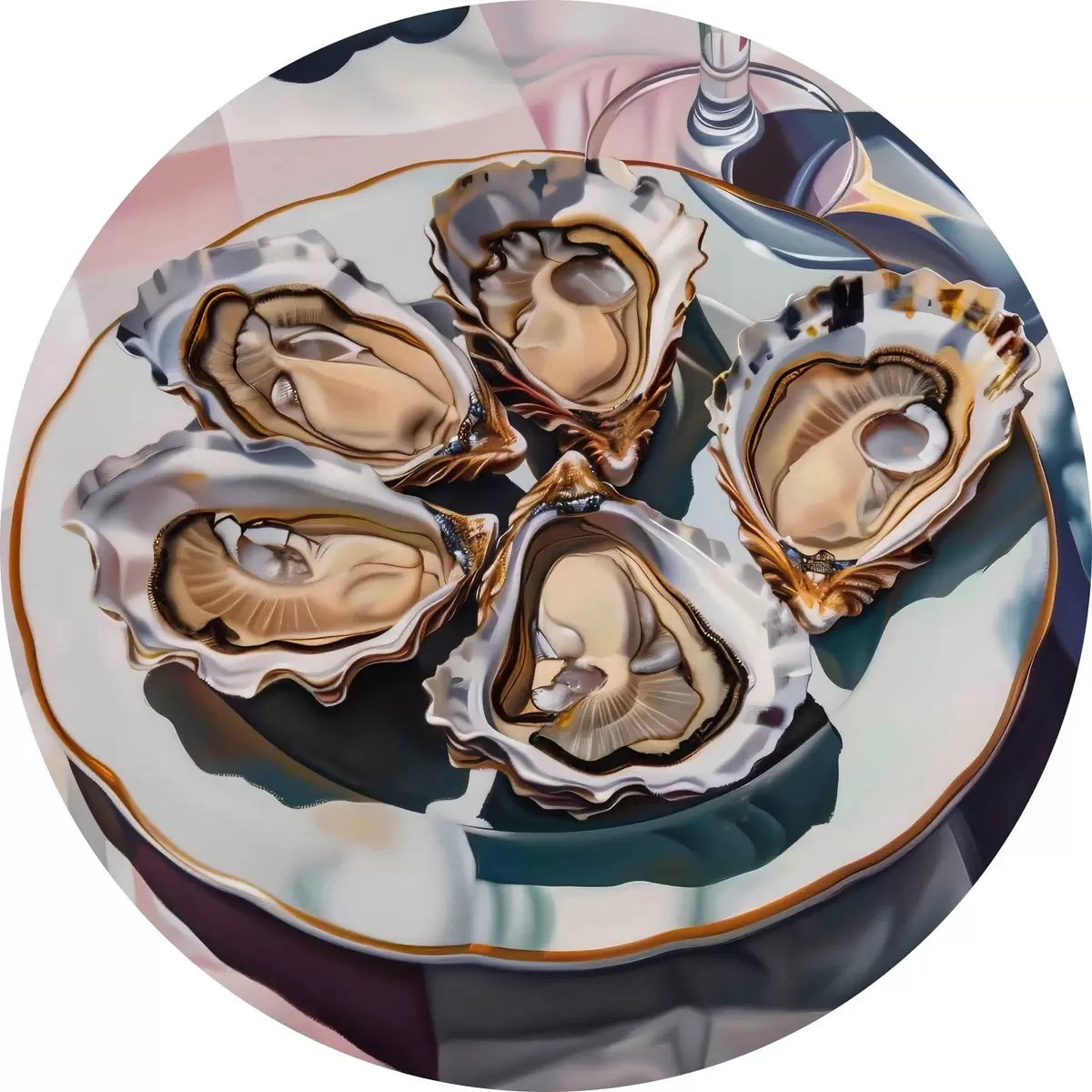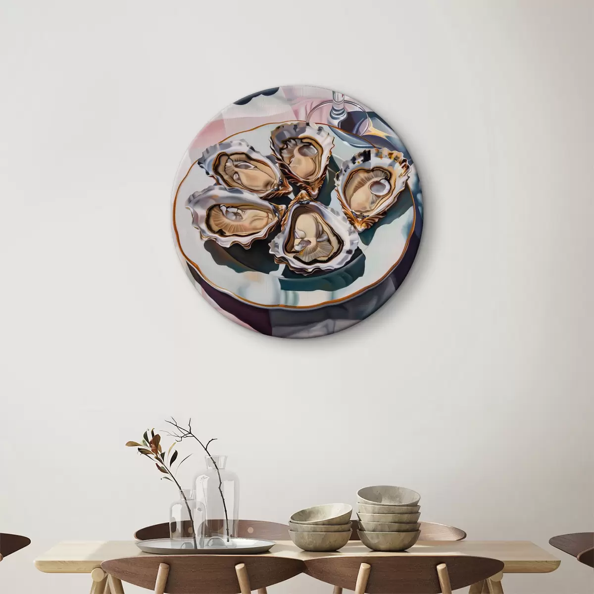 Quadri rotondi Un piatto di ostriche e un bicchiere di vino r38514