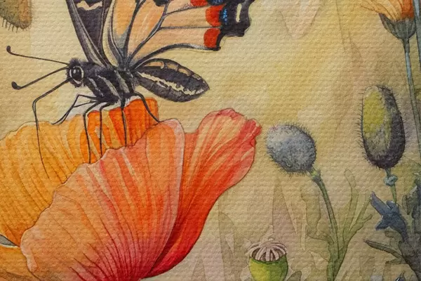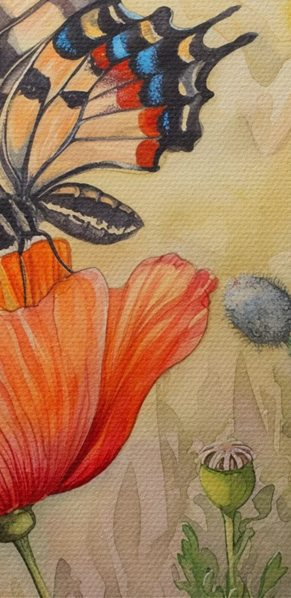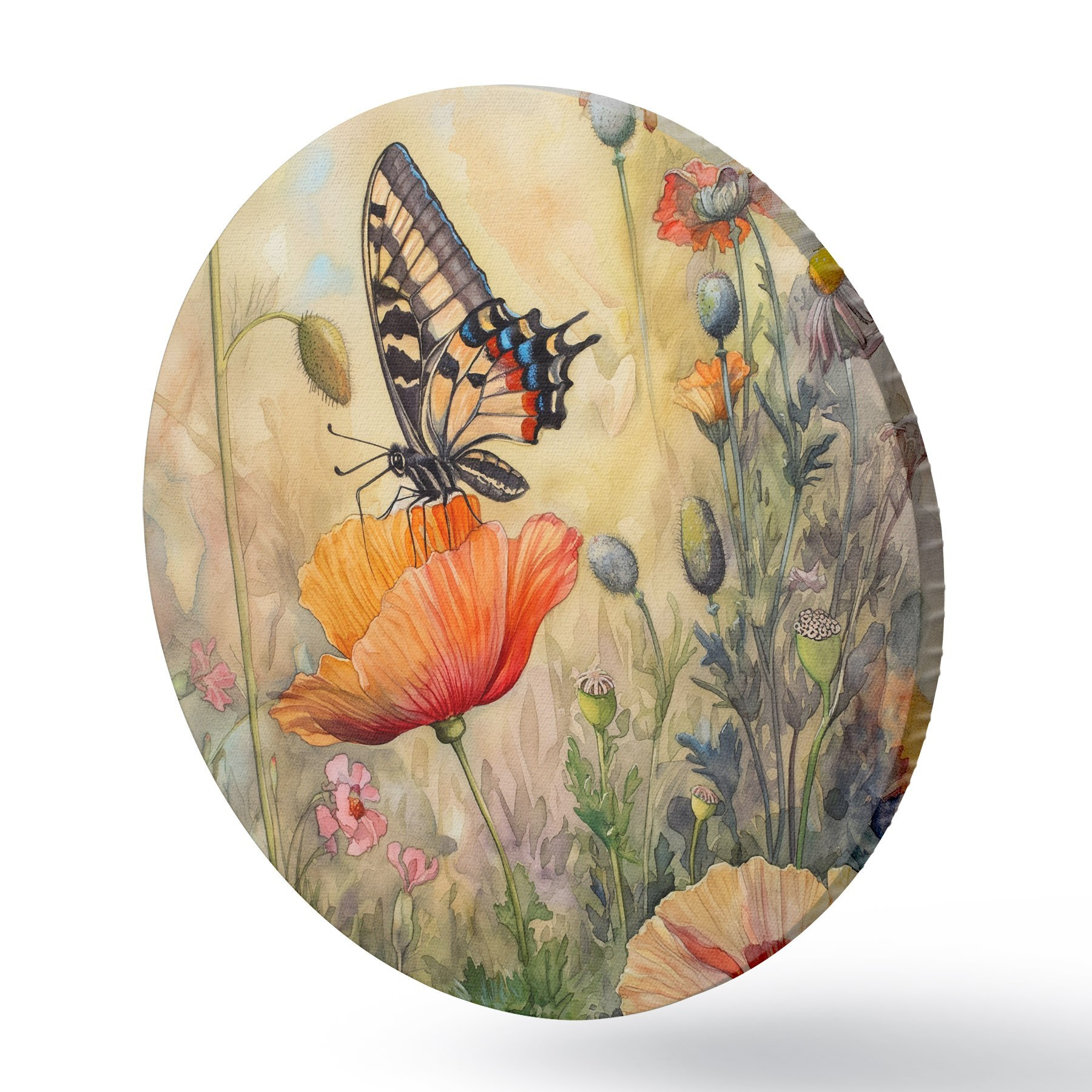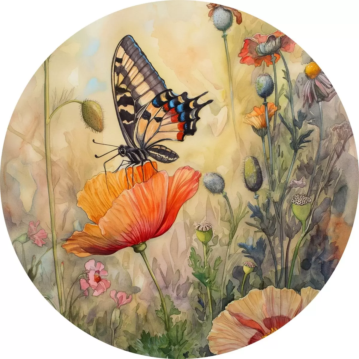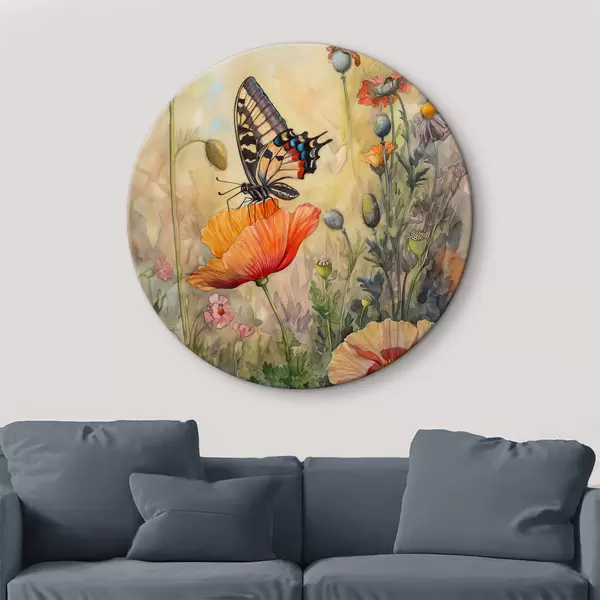 Quadri rotondi Campo di papaveri e farfalle r38520