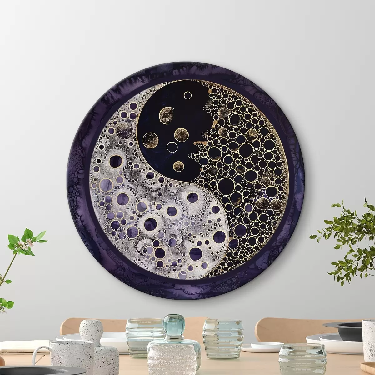 Quadri rotondi Simbolo dello yin e dello yang su sfondo viola r38535