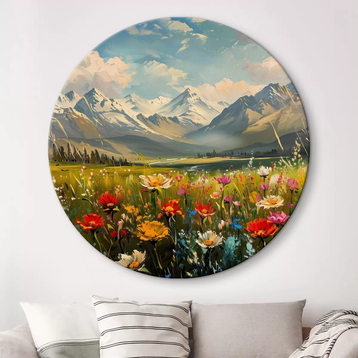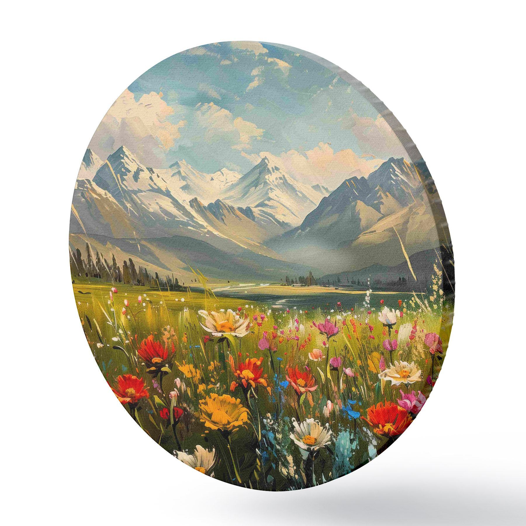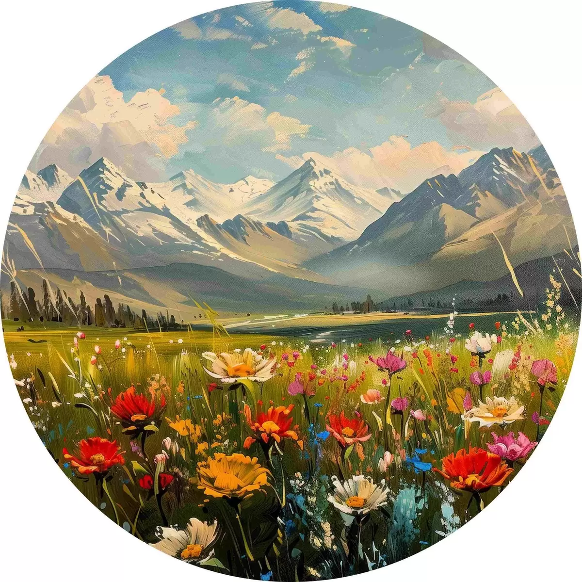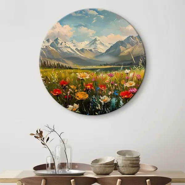 Quadri rotondi Prati fioriti sotto le cime innevate r38573