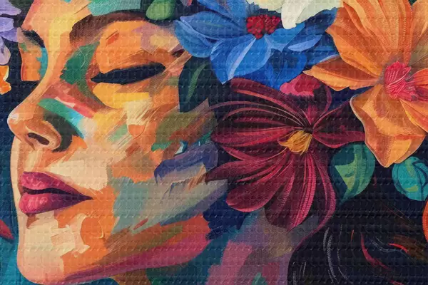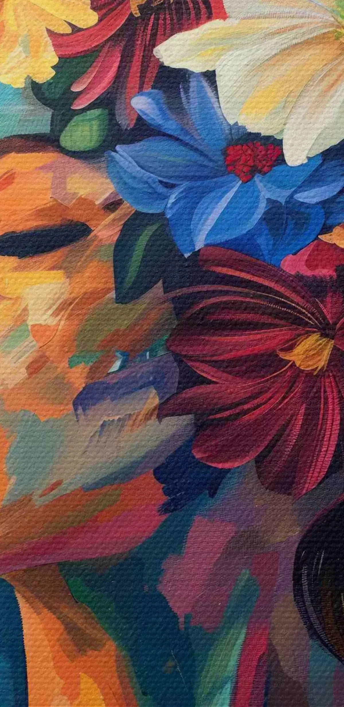 Immagine Un dipinto che raffigura una donna con fiori tra i capelli Nr r38574