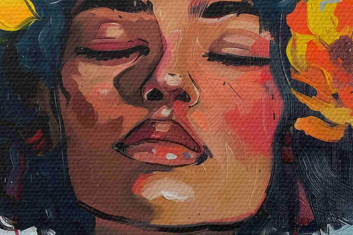 Immagine Un dipinto che raffigura una donna con fiori tra i capelli Nr r38575