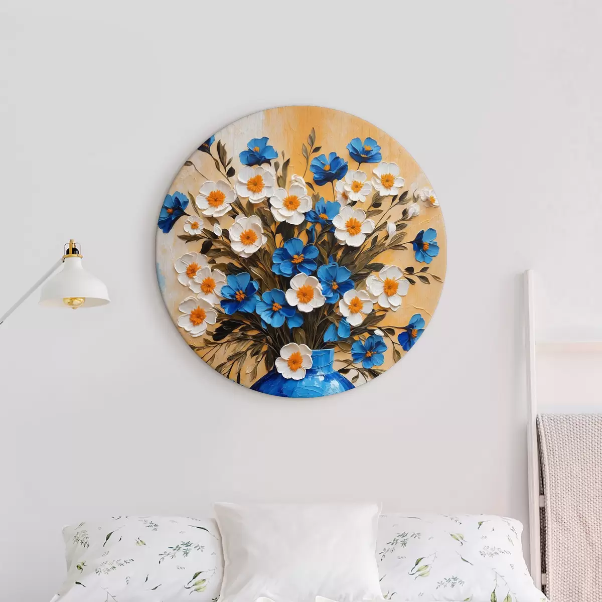 Quadri rotondi Fiori in un vaso blu su uno sfondo astratto r38584