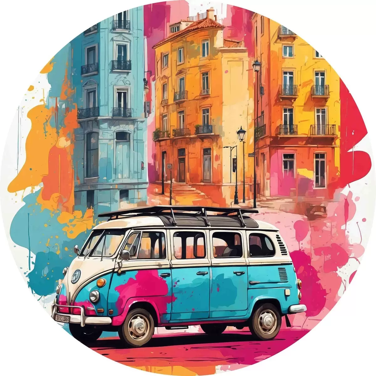 Quadri rotondi Un viaggio colorato attraverso i luoghi urbani r38593