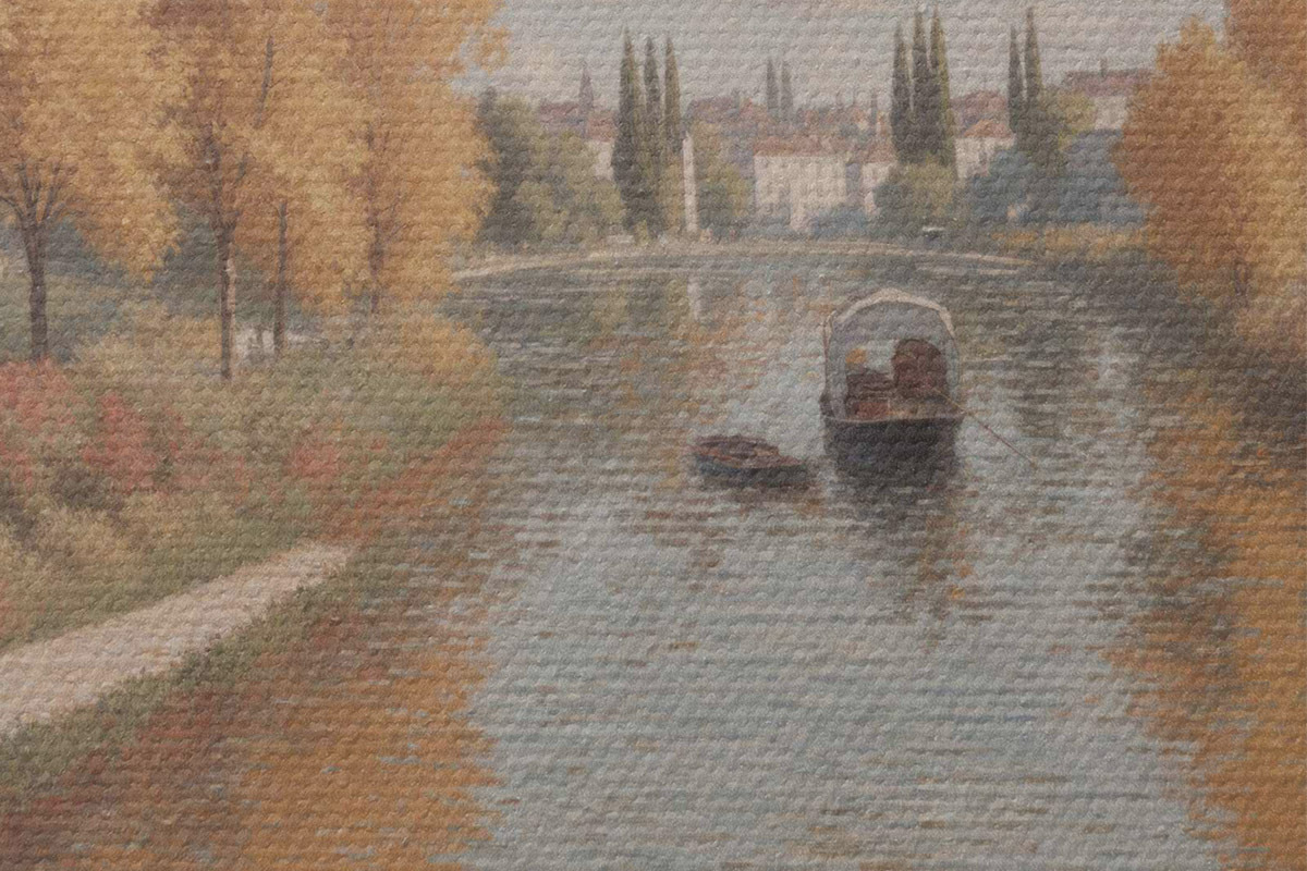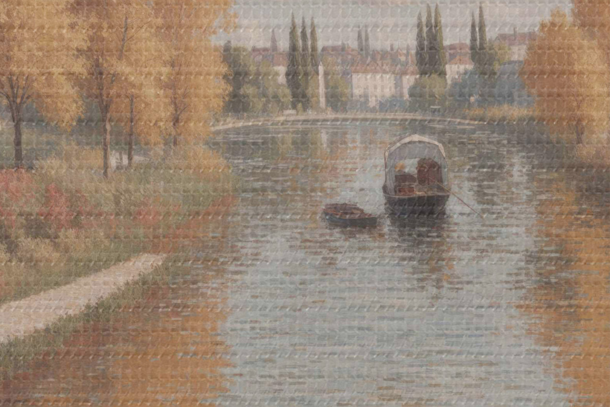Immagine Un dipinto di un fiume con barche e persone. Nr r38598