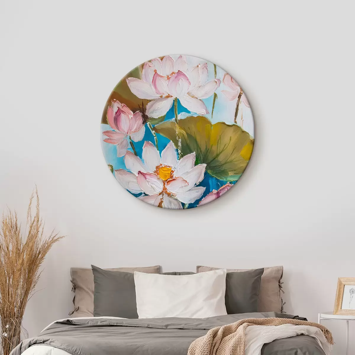 Quadri rotondi Un dipinto di fiori e foglie r38608