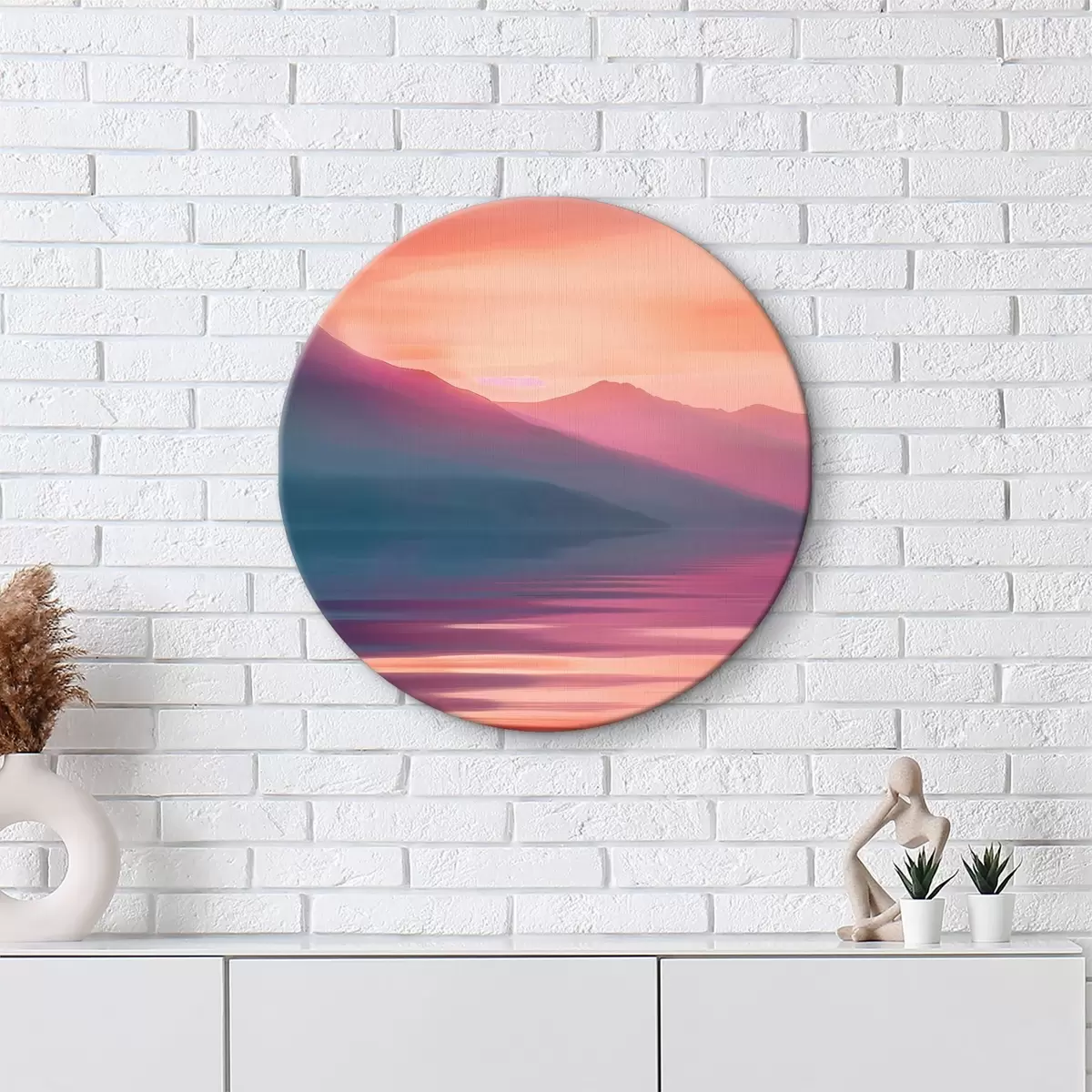 Quadri rotondi Uno specchio d'acqua con montagne in lontananza r38621
