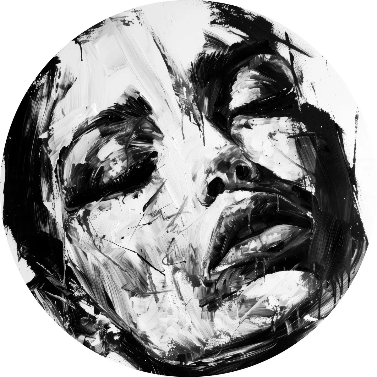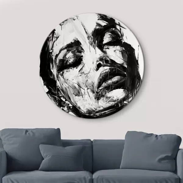 Quadri rotondi Ritratto di donna con pennellate nere r38641