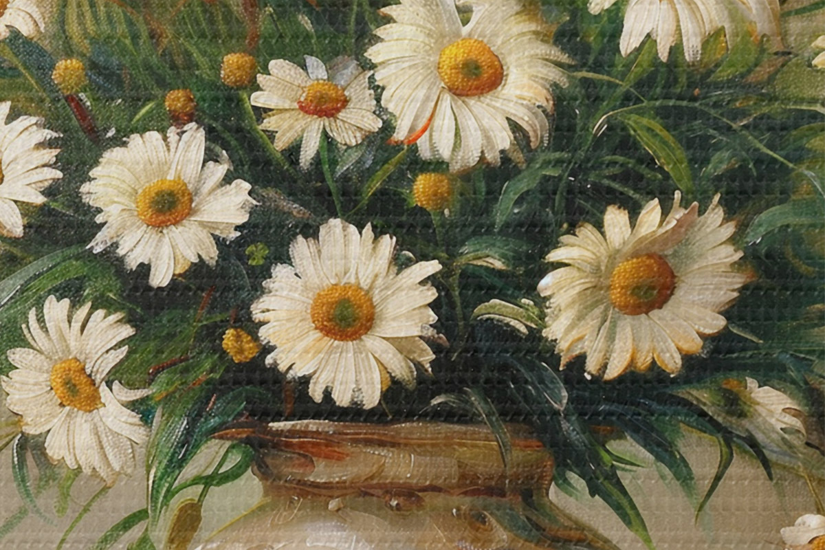 La fine trama dei fili di questa tela ricorda la superficie delle tele degli artisti professionisti.