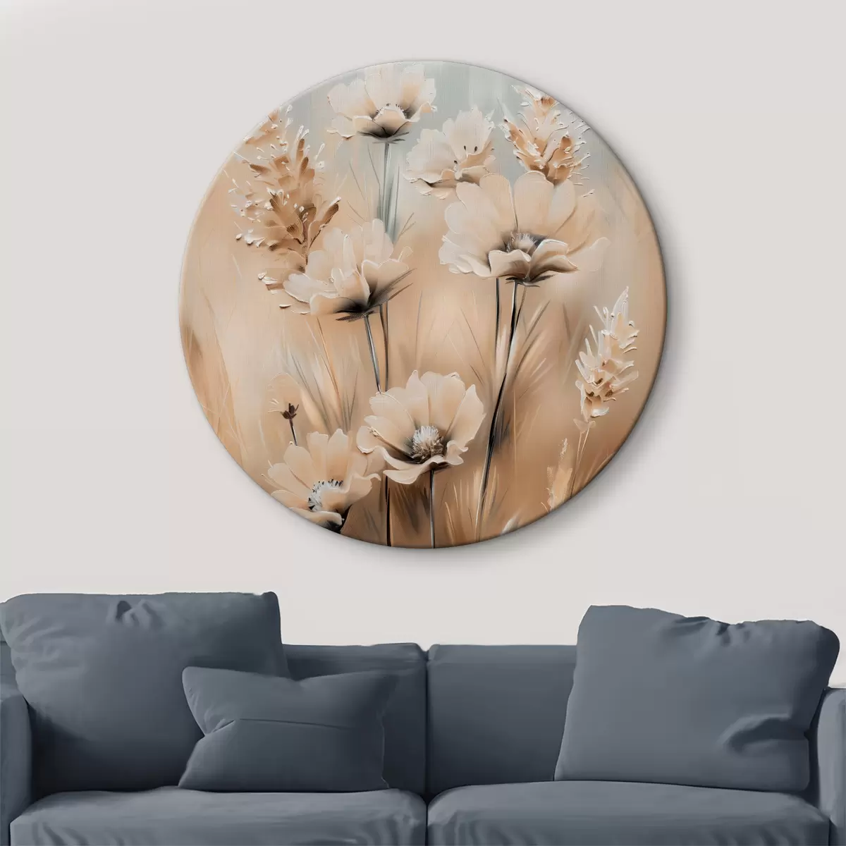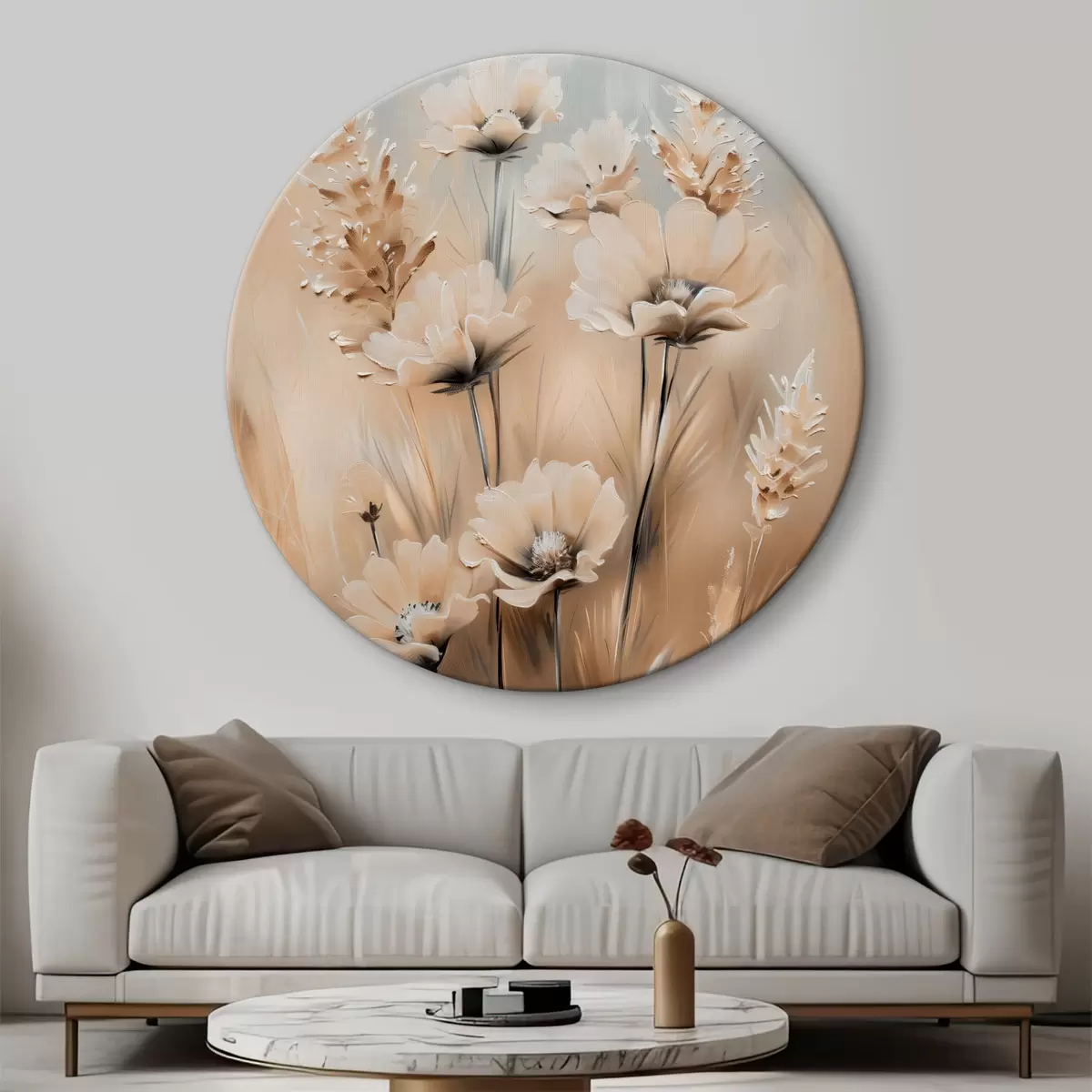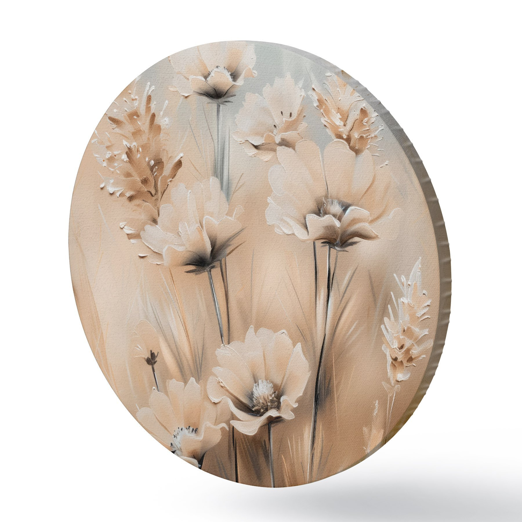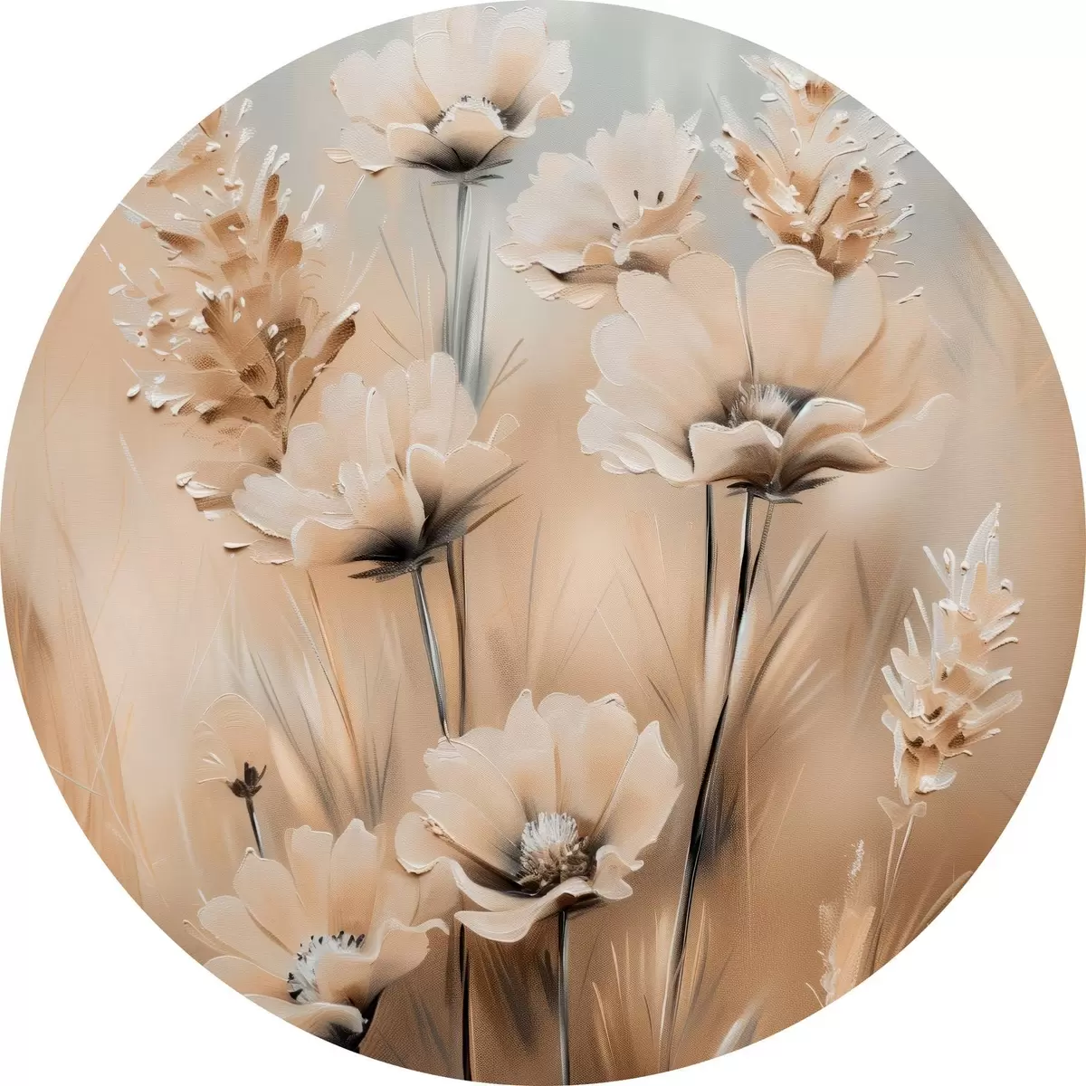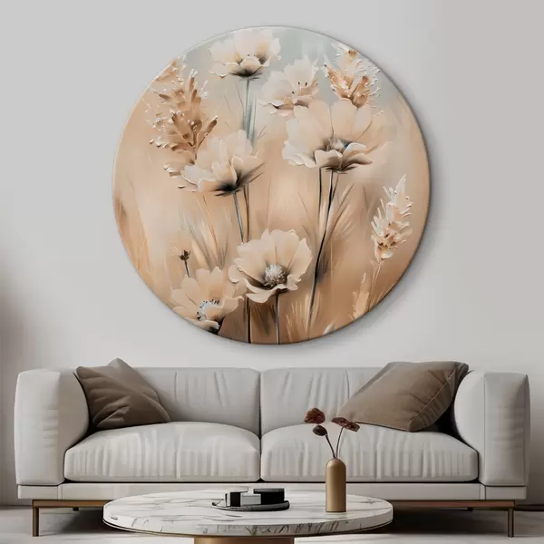 Quadri rotondi Fiori in campo in tonalità beige r38720